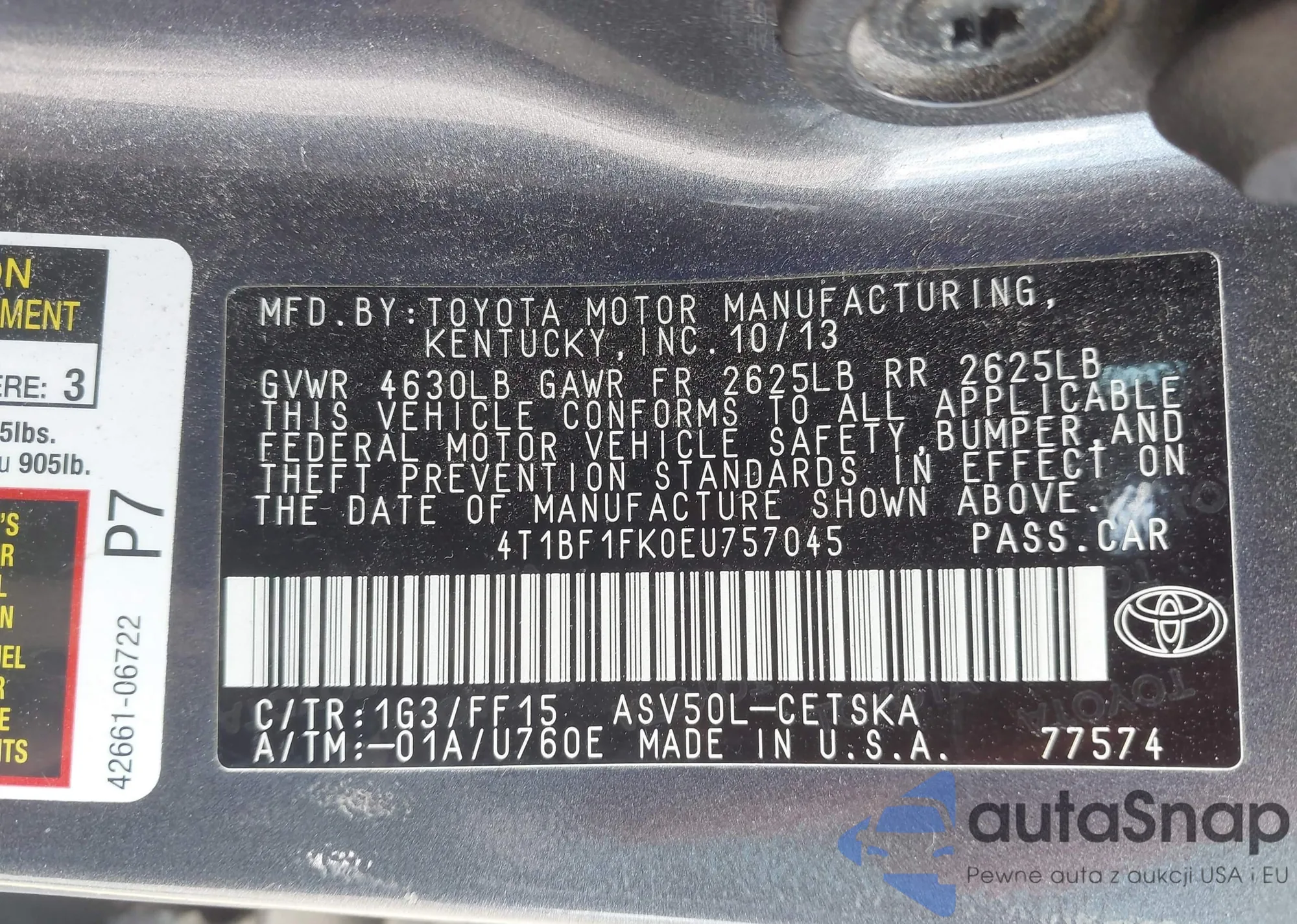 • VIN 4T1DBADK0SU003940