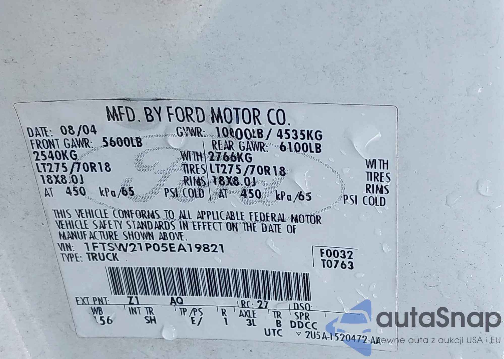 LOT: 43474217 VIN: 1FTSW21P05EA19821