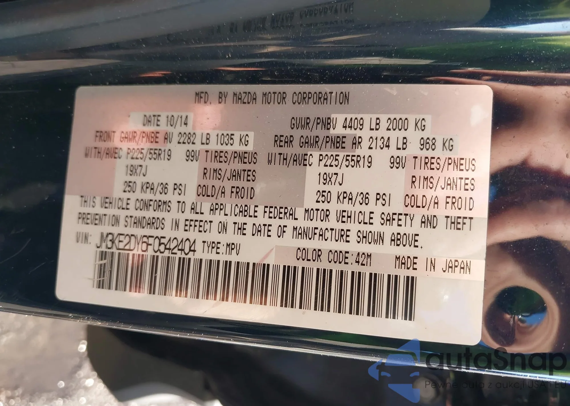 LOT: 43674107 VIN: JM1CW2CL1E0166855