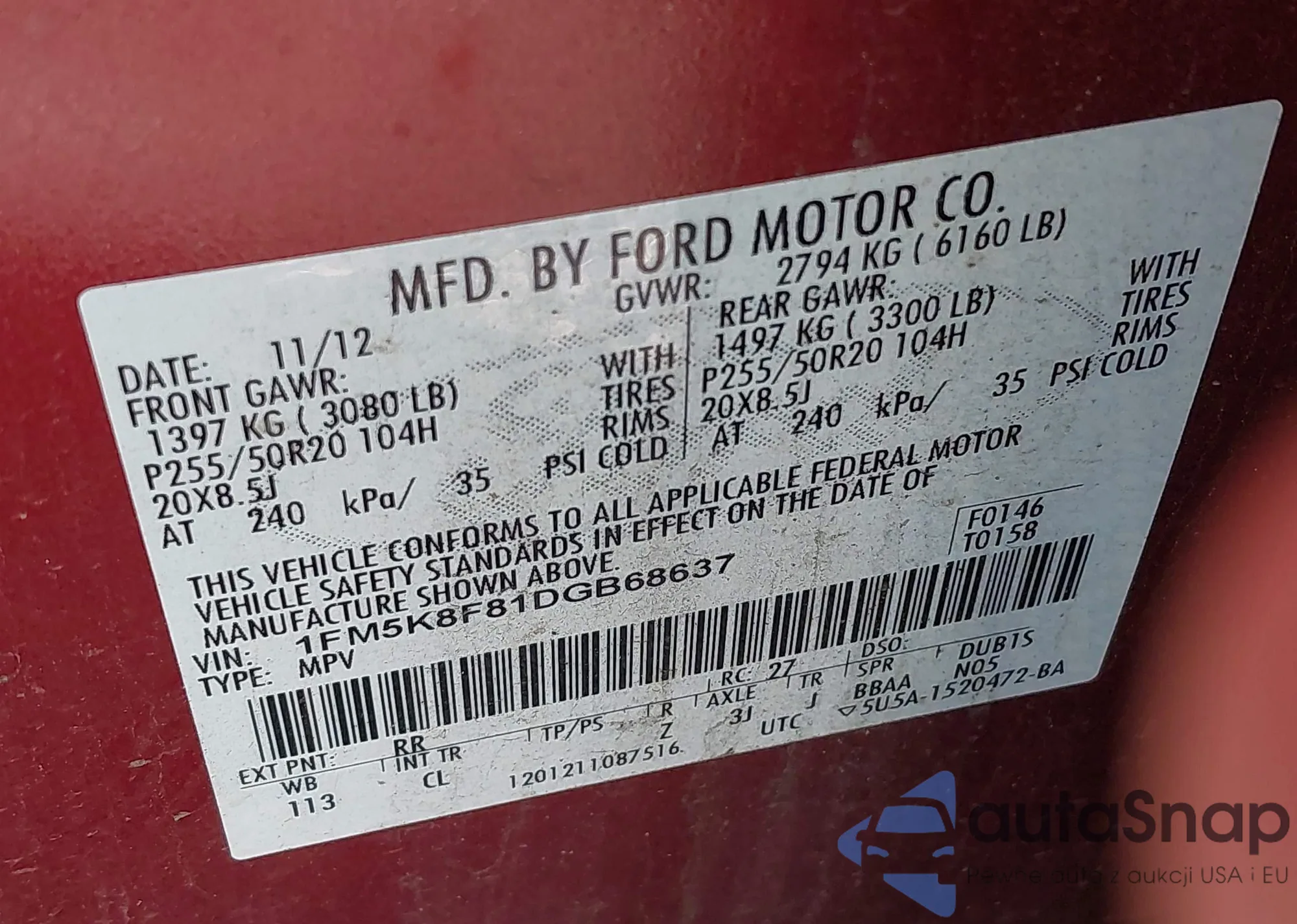 LOT: 43577596 VIN: 1FMCU9D78CKA27240