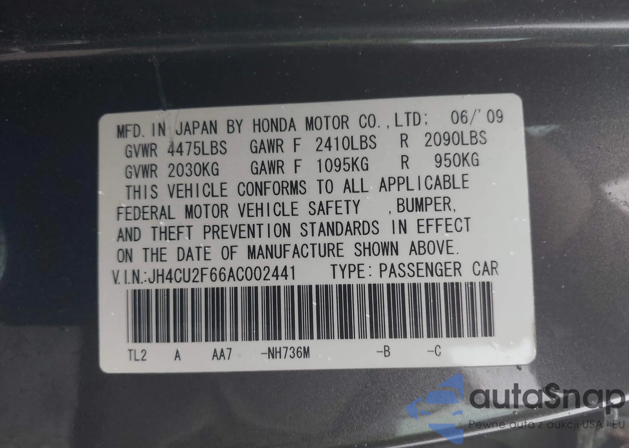 • VIN 2HGFC2F86LH558687