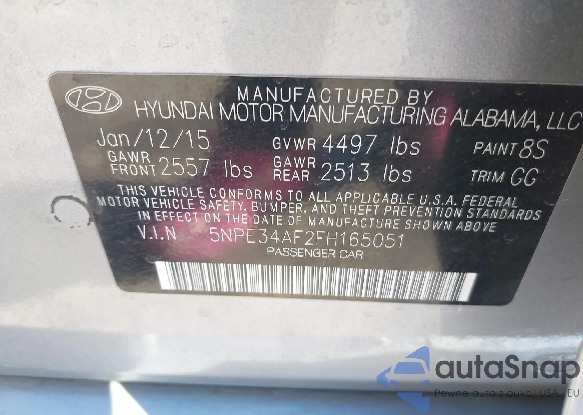 • VIN 5NPE34AF2FH165051