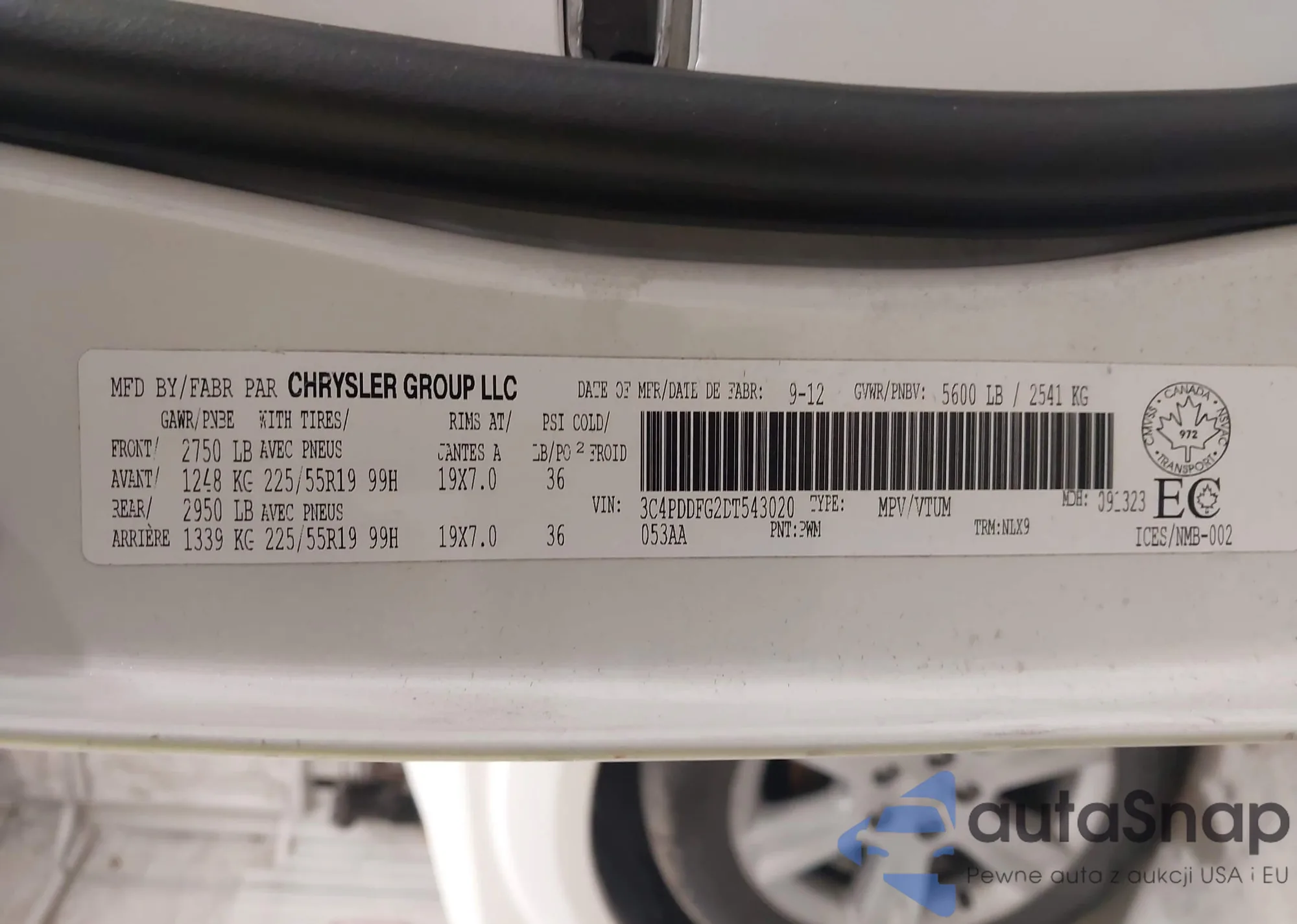 LOT: 43618270 VIN: 3C4PDDFG2DT543020