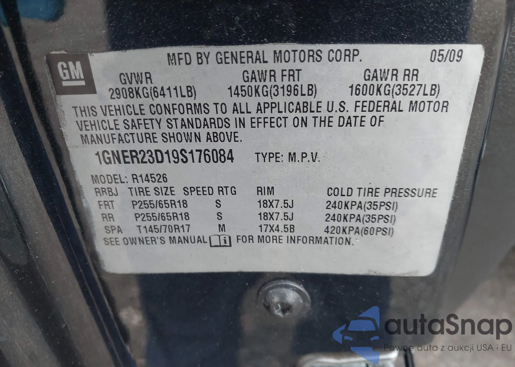 2009 Chevrolet Traverse Lt из США, поврежденный, VIN 1GNER23D19S176084