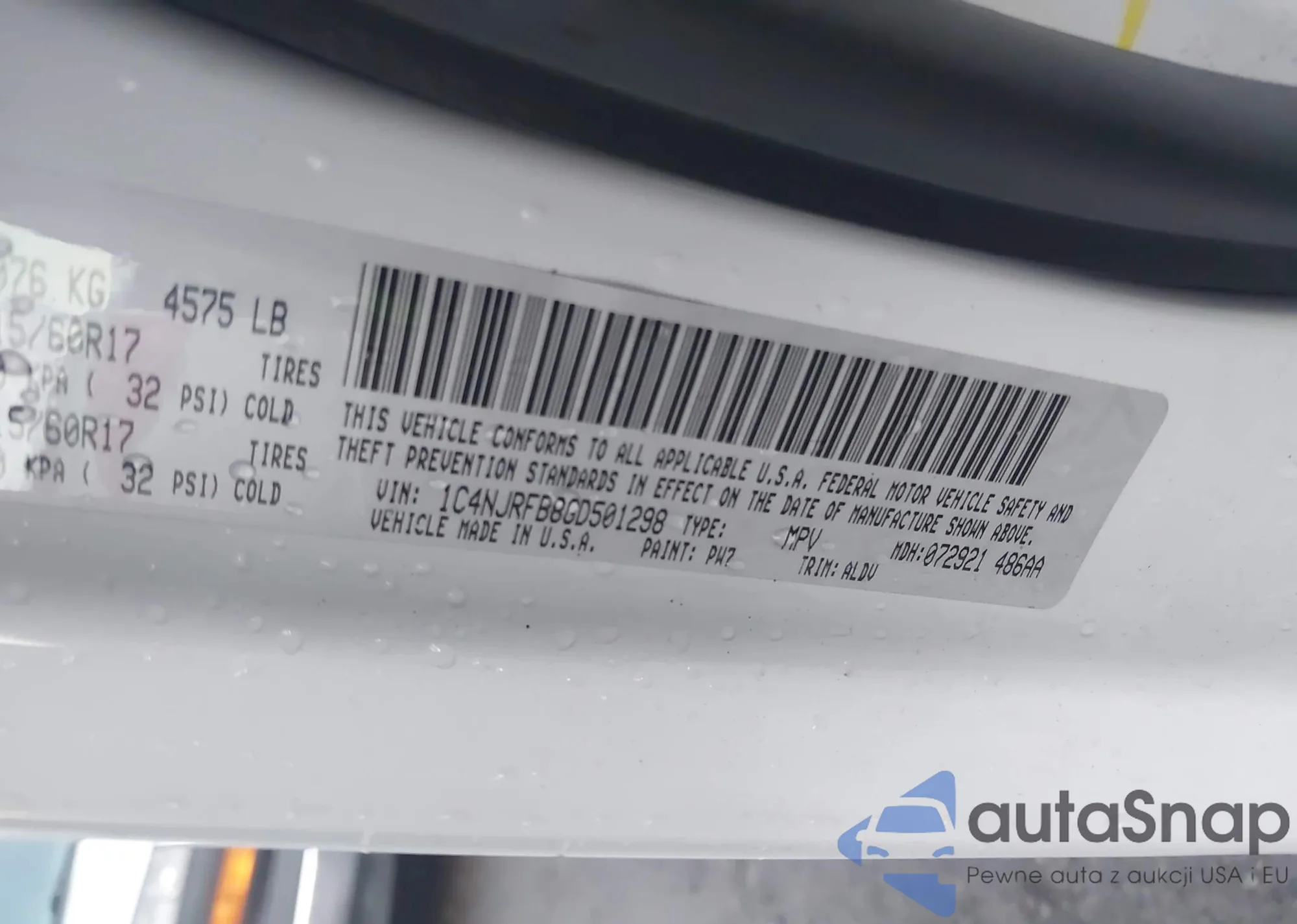 LOT: 43543948 VIN: 1C4NJRFB8GD501298