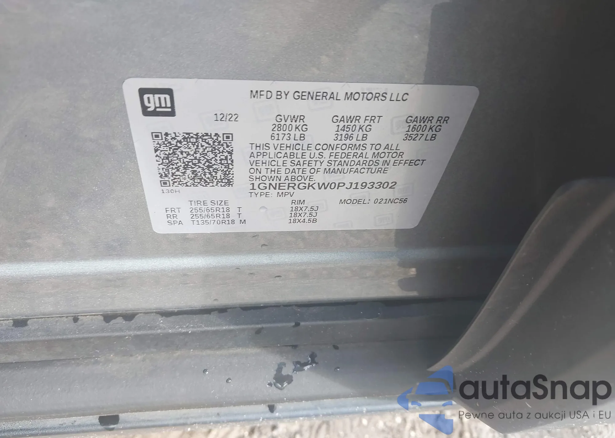 LOT: 43555417 VIN: 1GNERGKW0PJ193302
