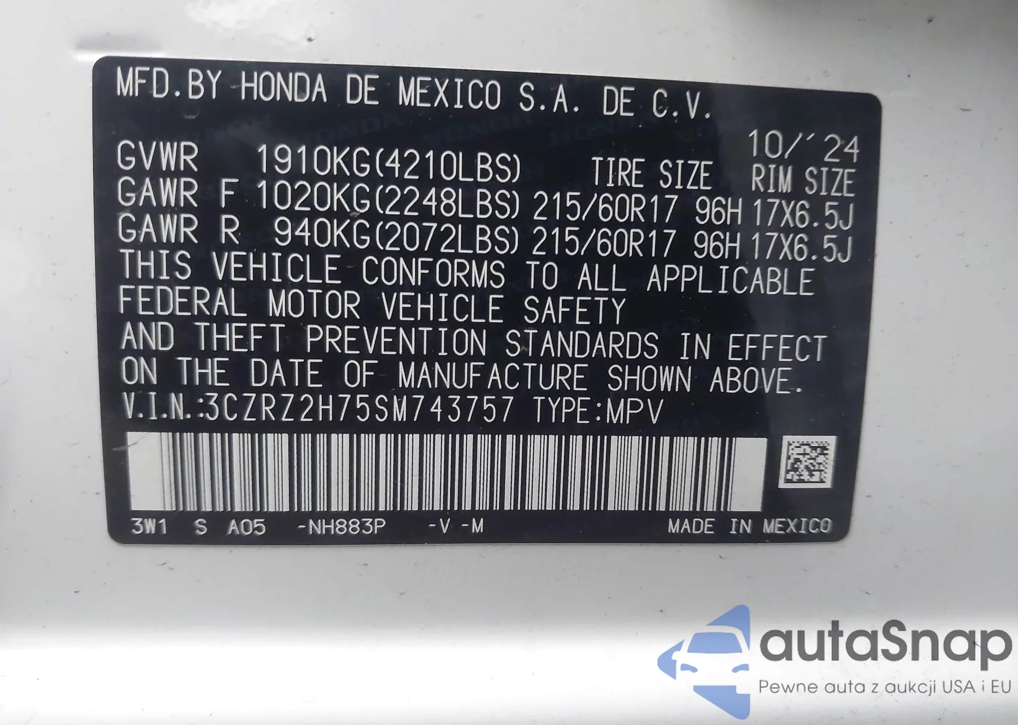 • VIN 5NMS3DAJ3PH508889