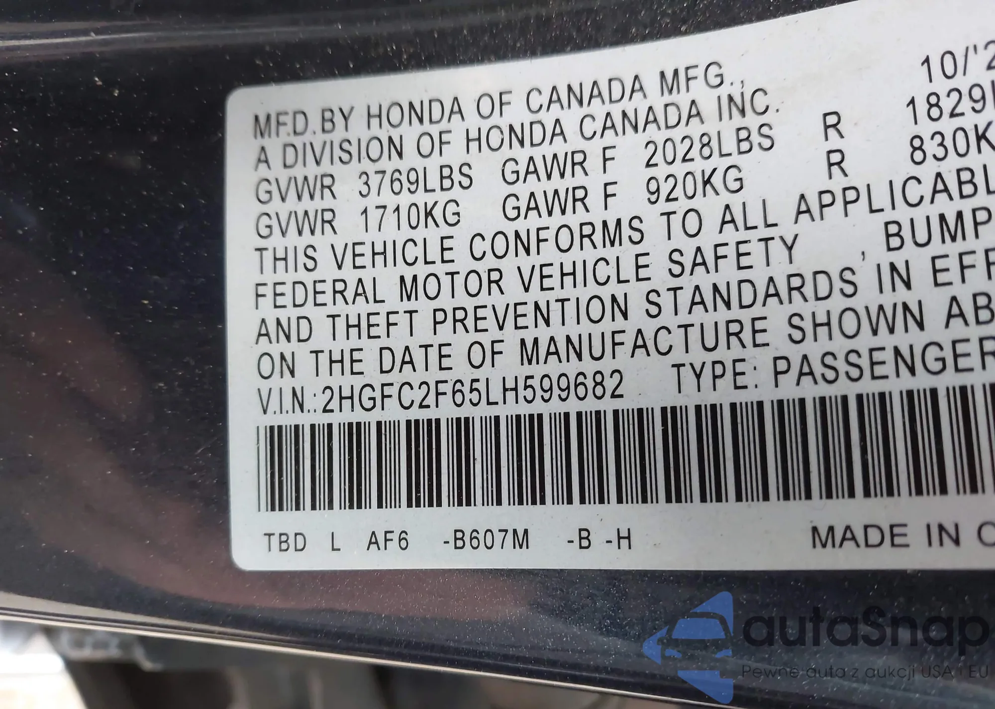 • VIN 2HGFC2F65LH599682