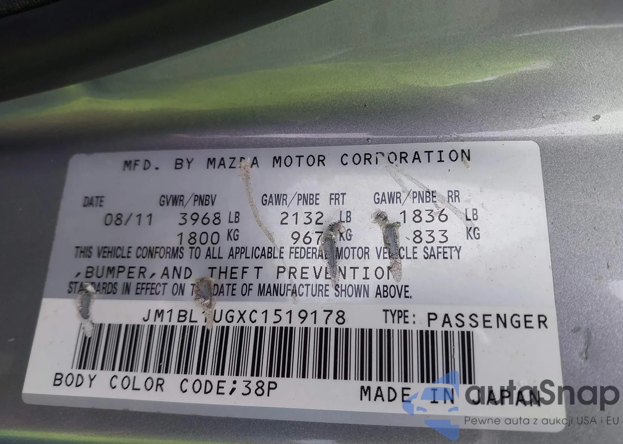 LOT: 43567184 VIN: 1VWAA7A39JC041758