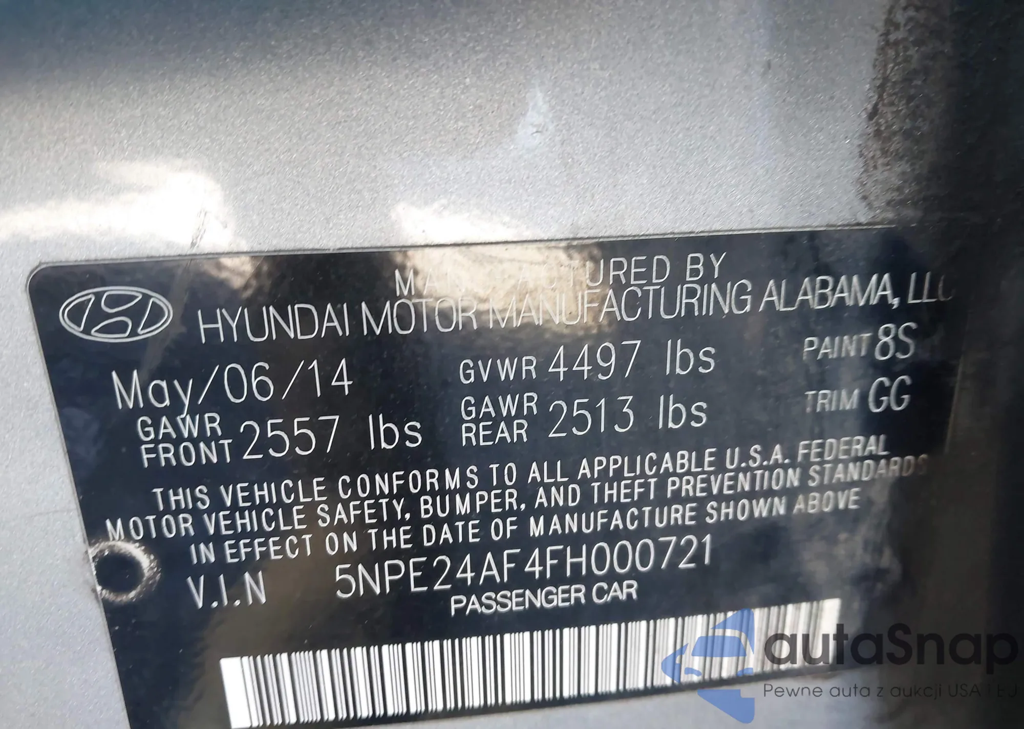 • VIN 5NPE24AF4FH000721