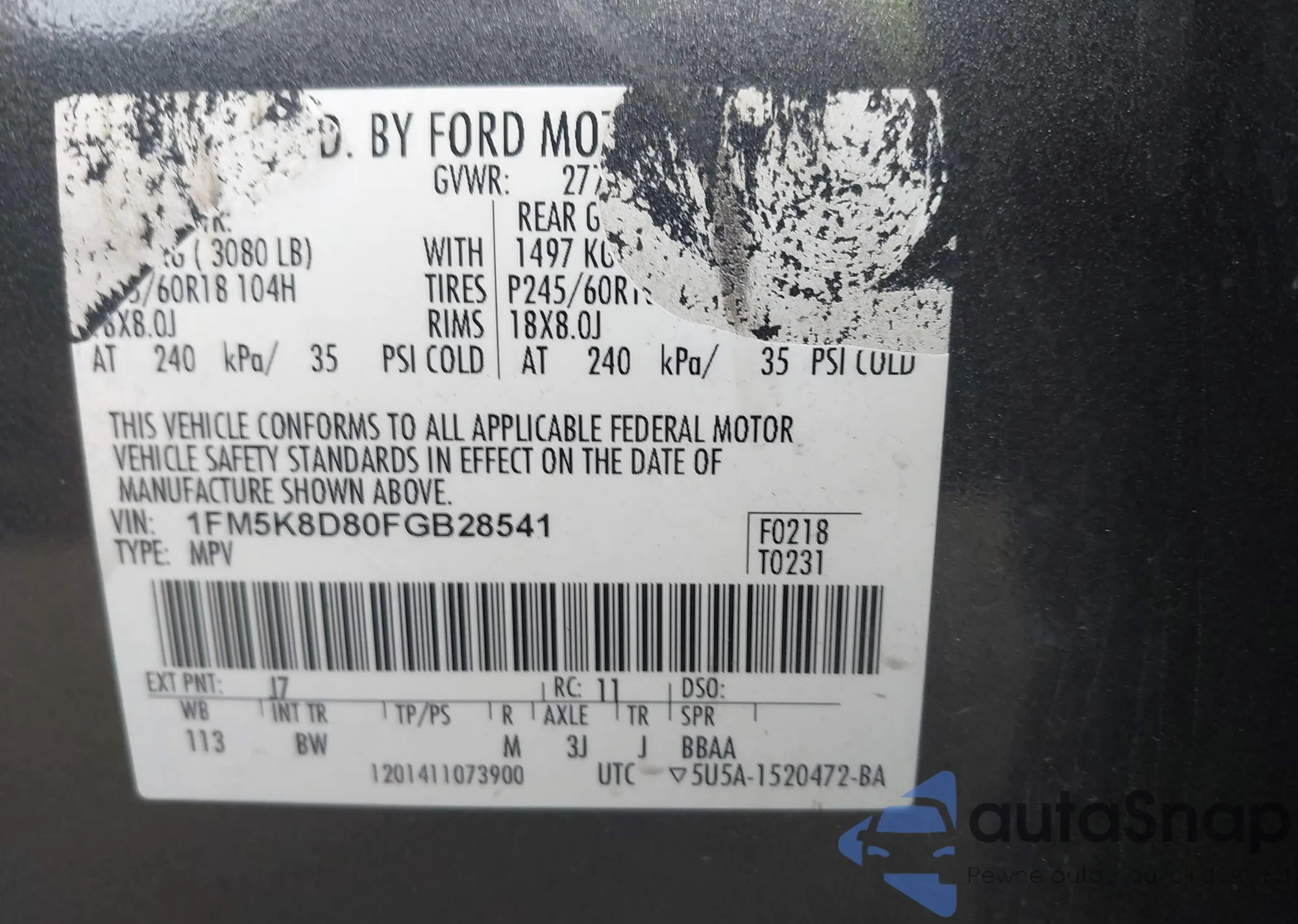 • VIN 1FM5K8D80FGB28541