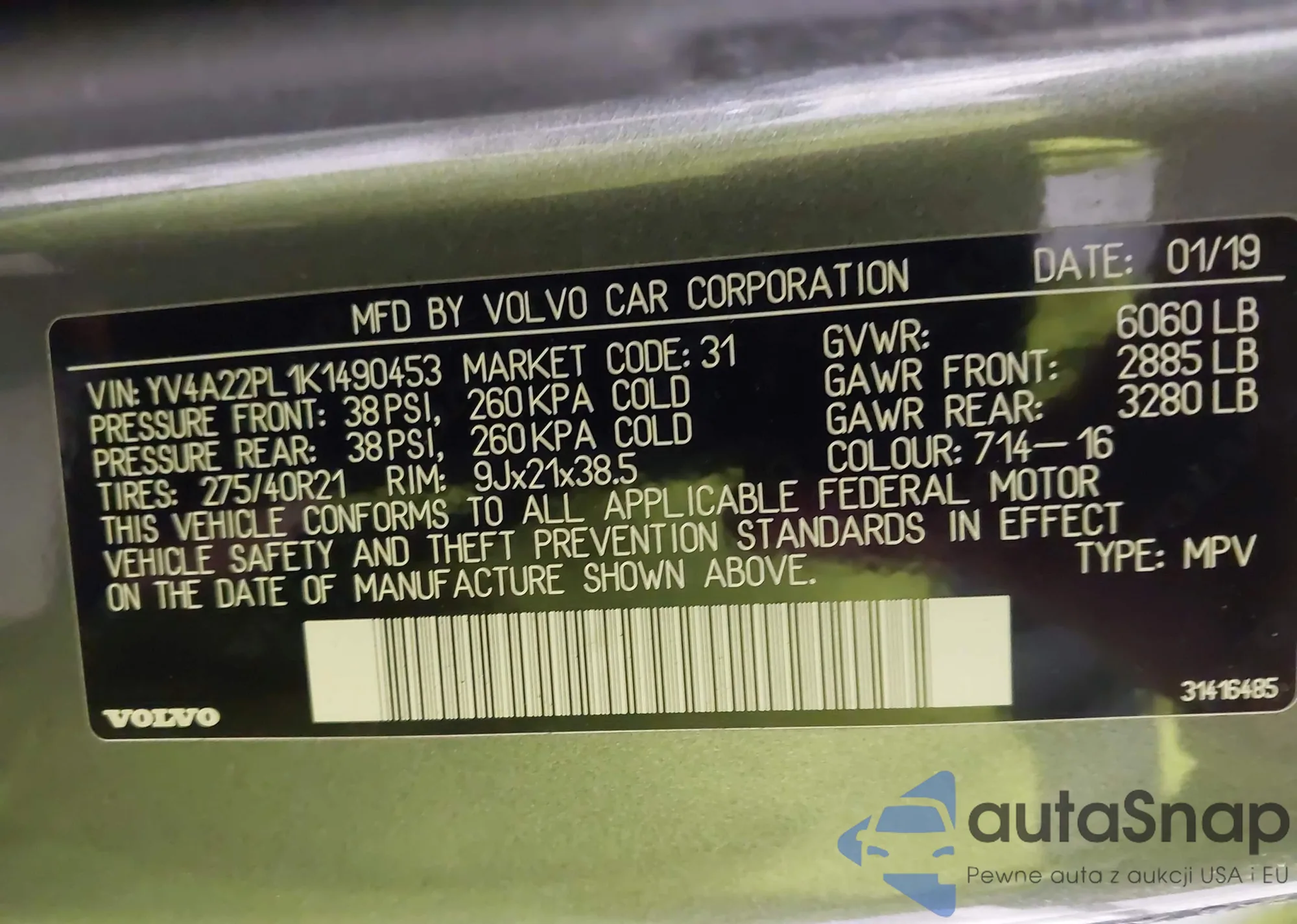 • VIN YV4A22PL1K1490453