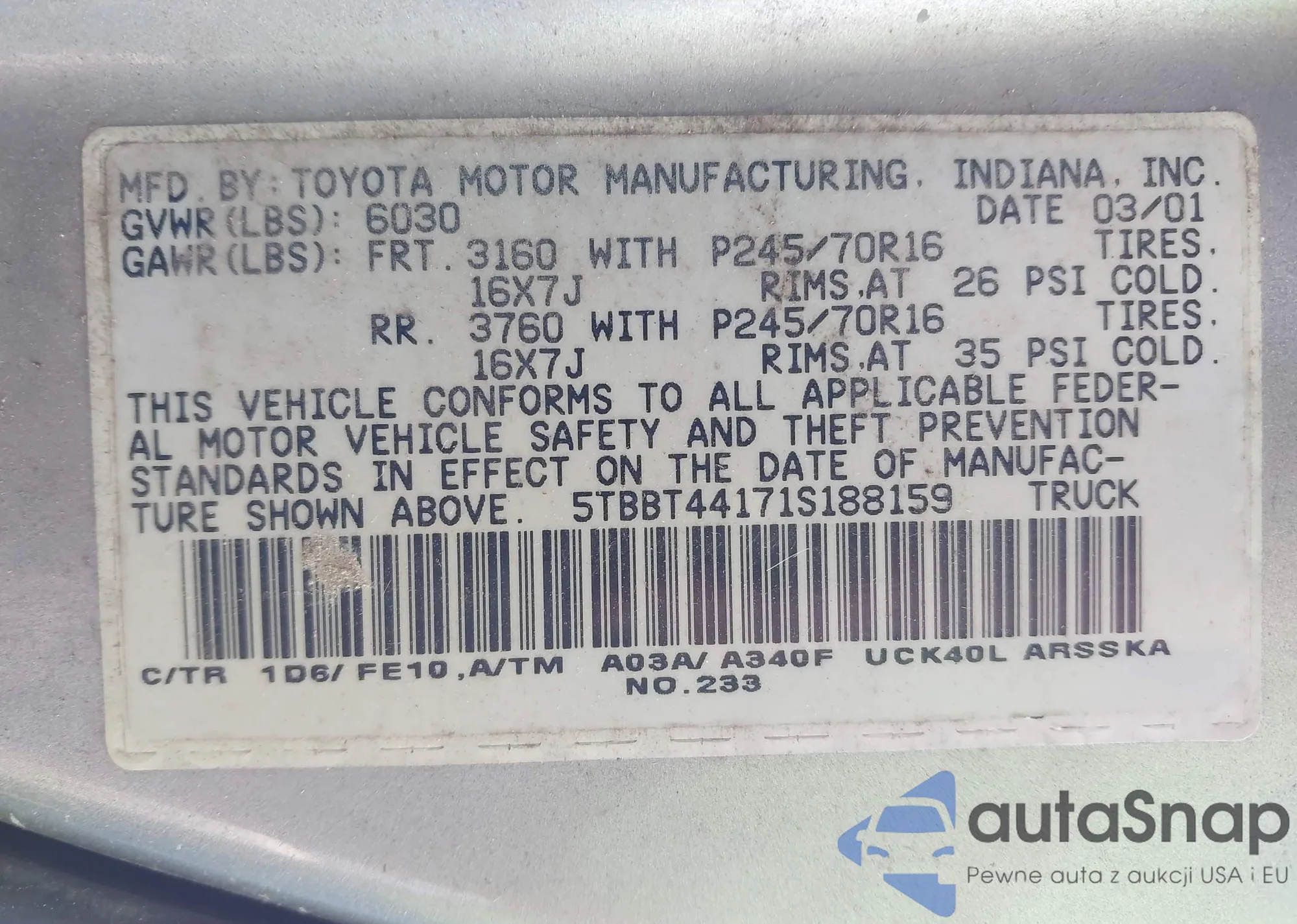 • VIN 5TBBT44171S188159
