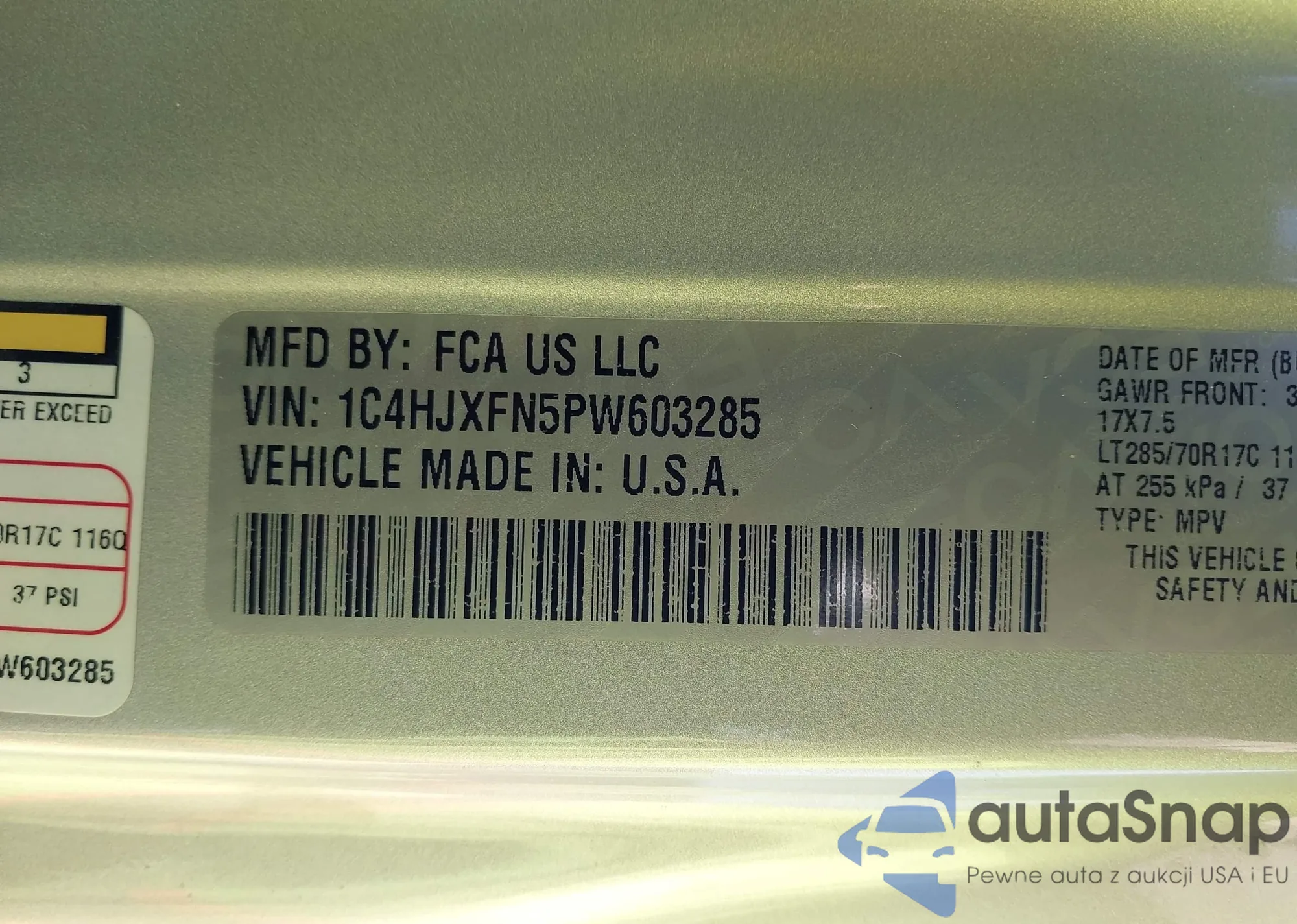 • VIN 1C4HJXFN5PW603285