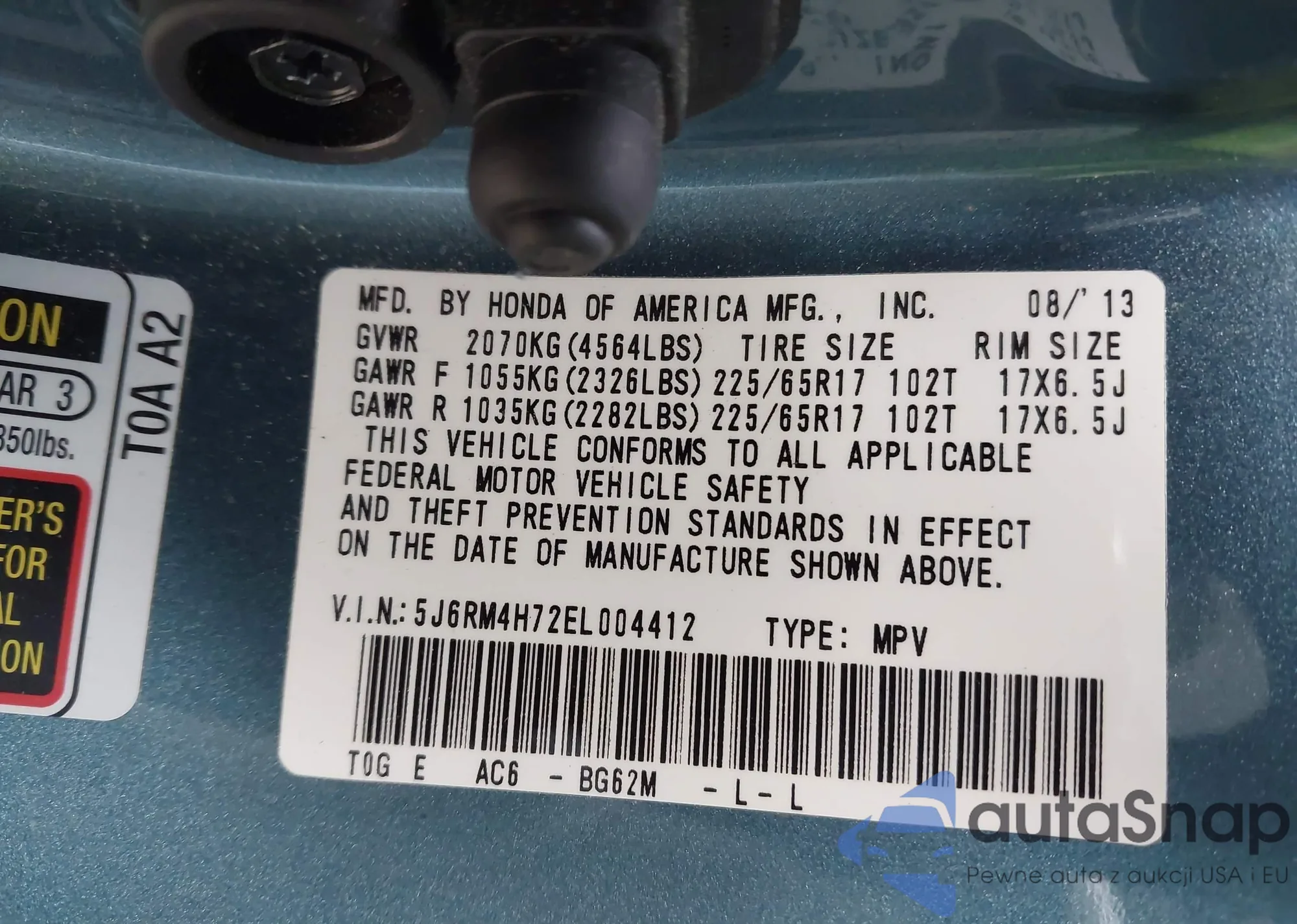 • VIN 5J6RM4H72EL004412