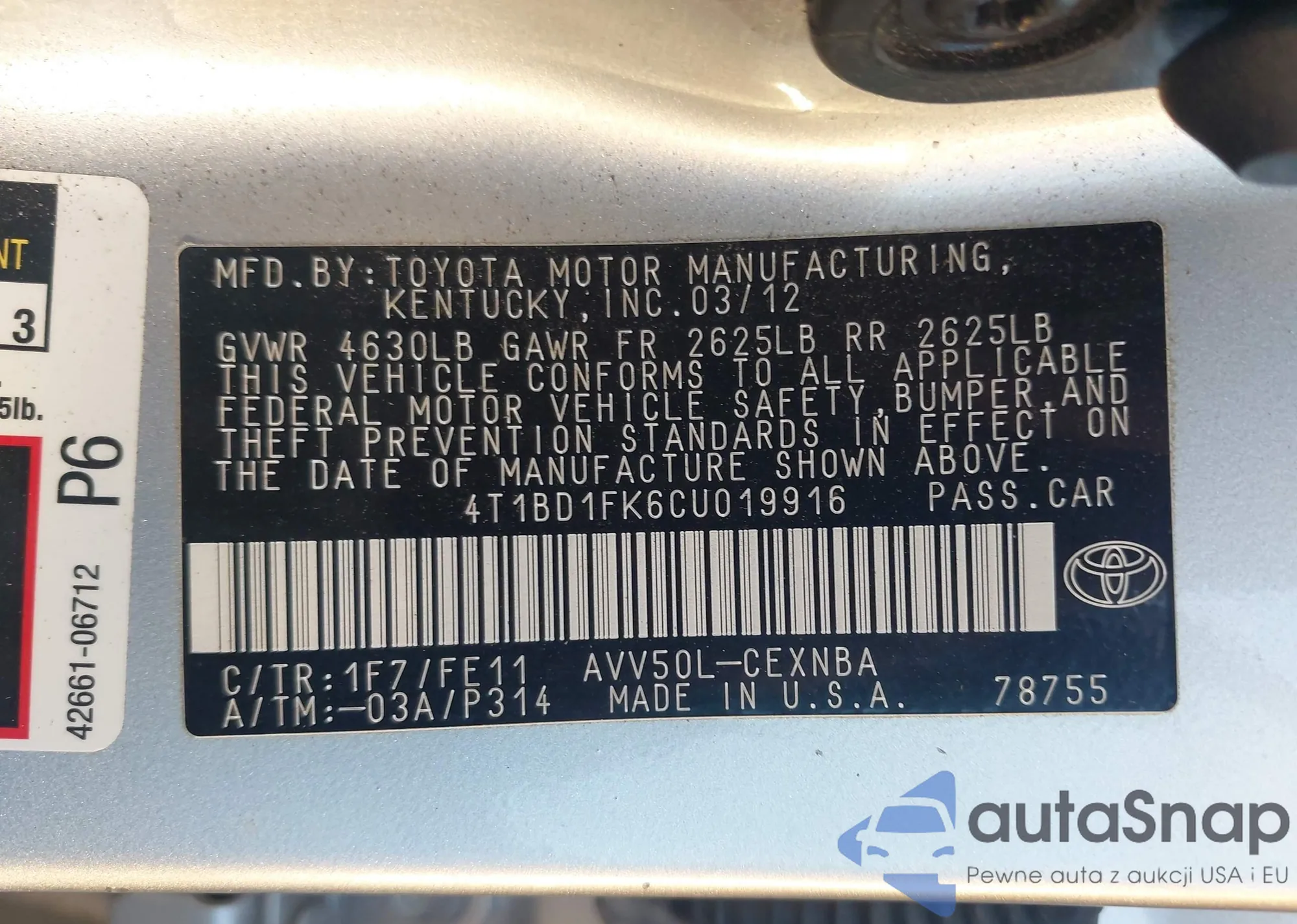• VIN 1HGCP2F69CA197346