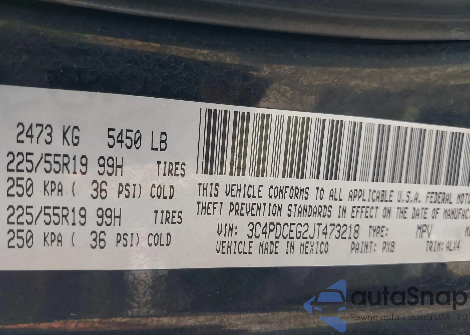 LOT: 43025598 VIN: 3C4PDCEG2JT473218