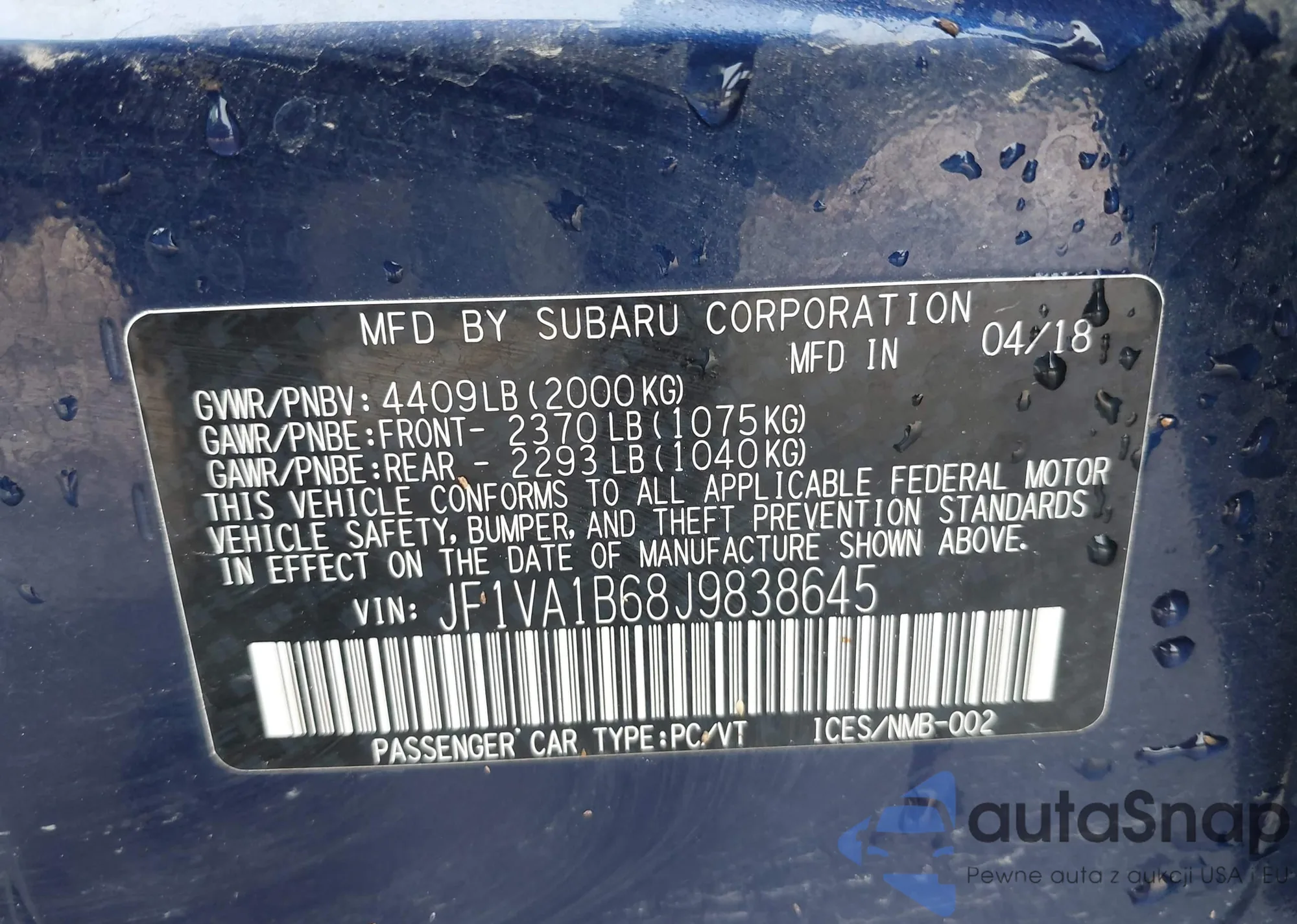 LOT: 43276843 VIN: JHMGD38648S027763