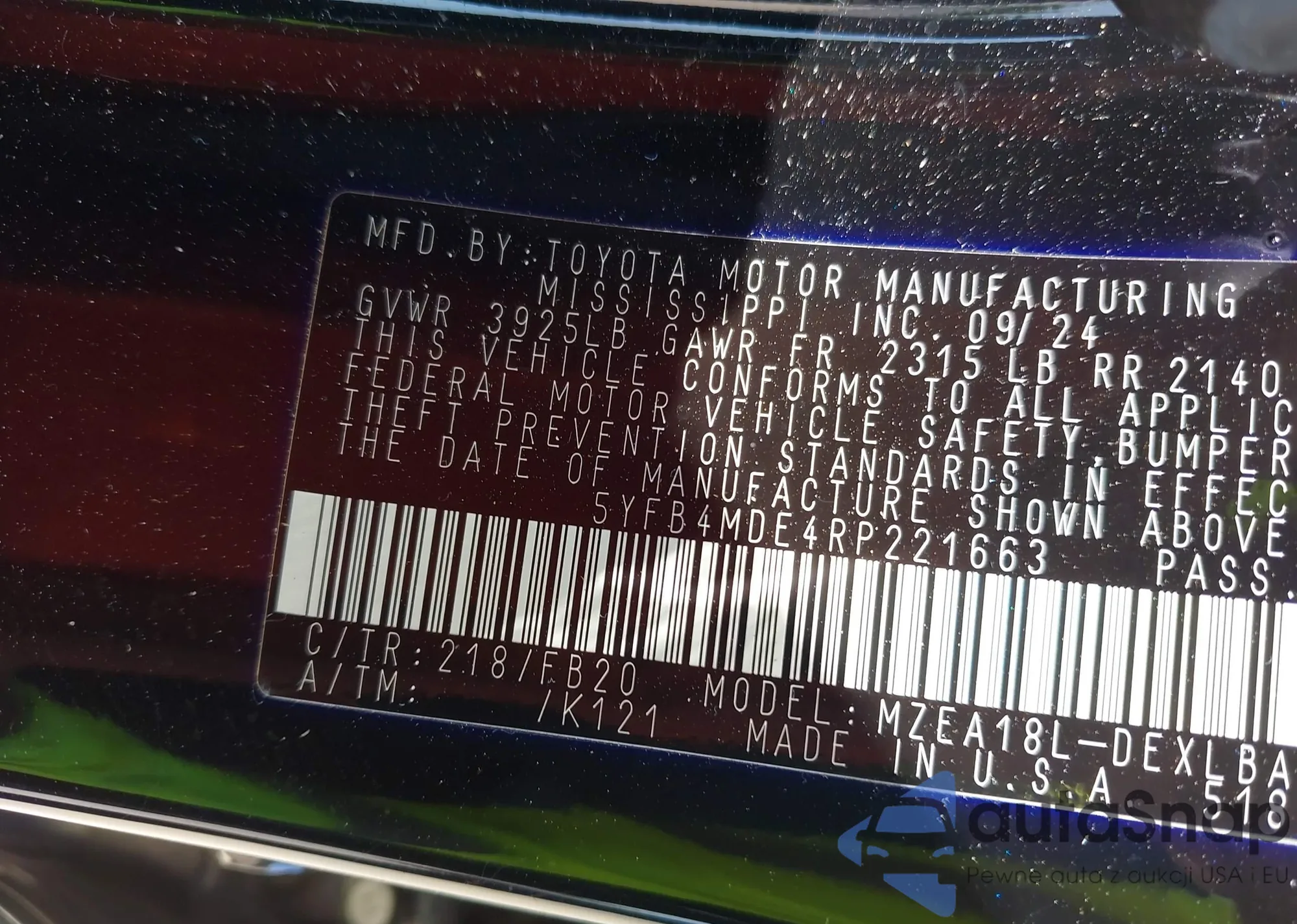LOT: 43276315 VIN: 5NMP24GL1RH007729