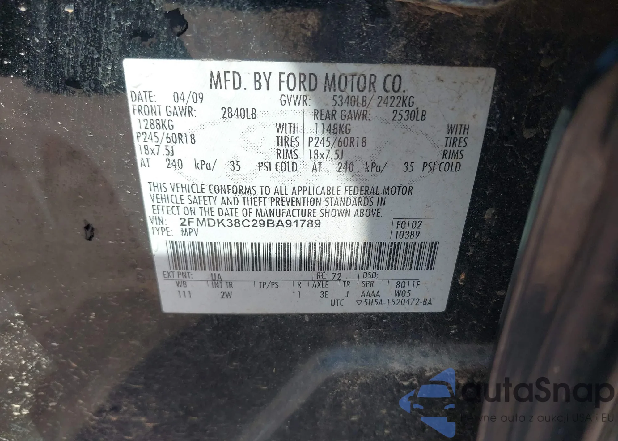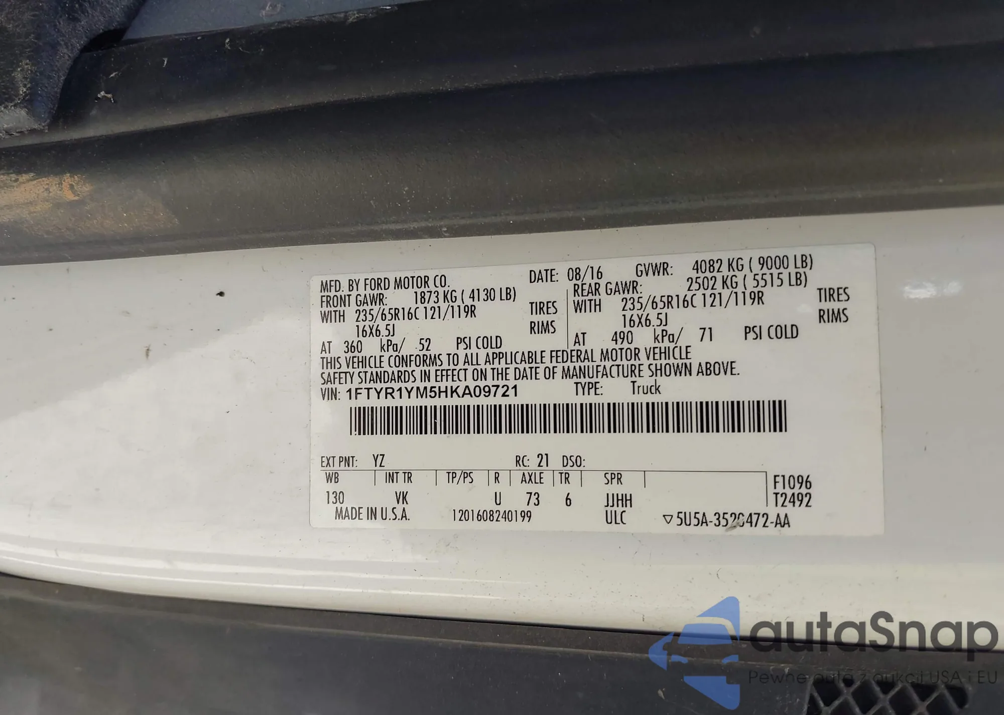 • VIN 1FTYR1YM5HKA09721