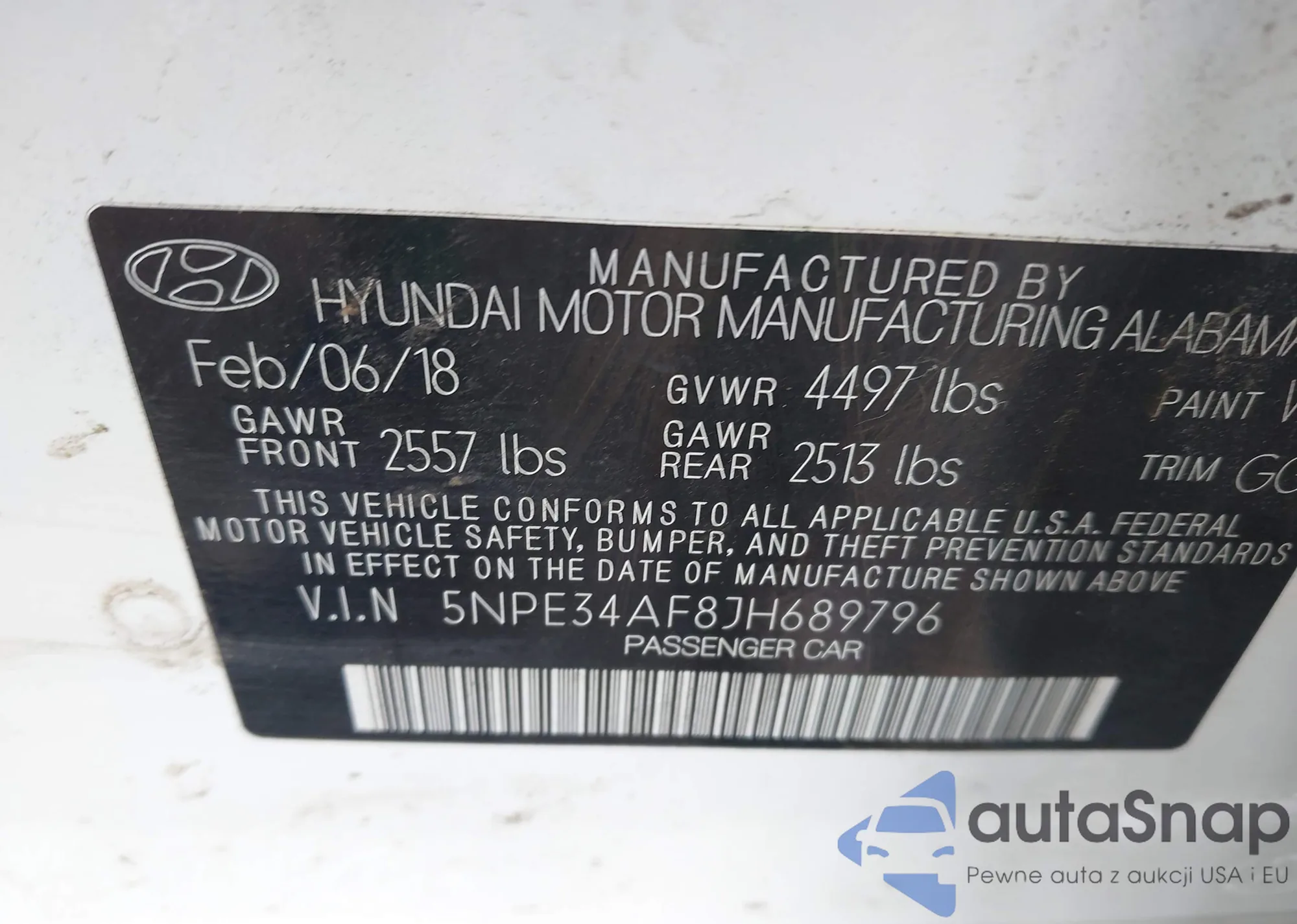 • VIN 5NPE34AF8JH689796