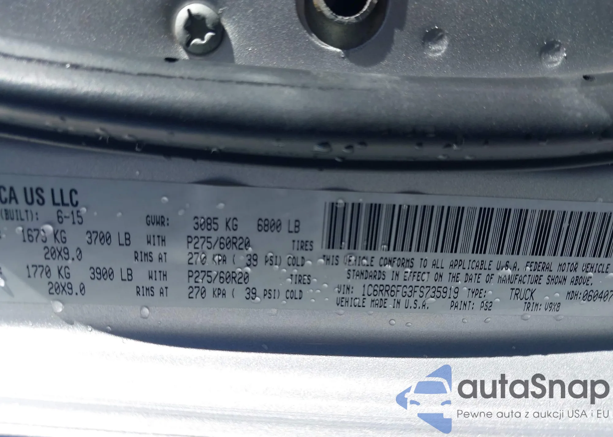 LOT: 91300435 VIN: 5TFTX4CN2FX048588