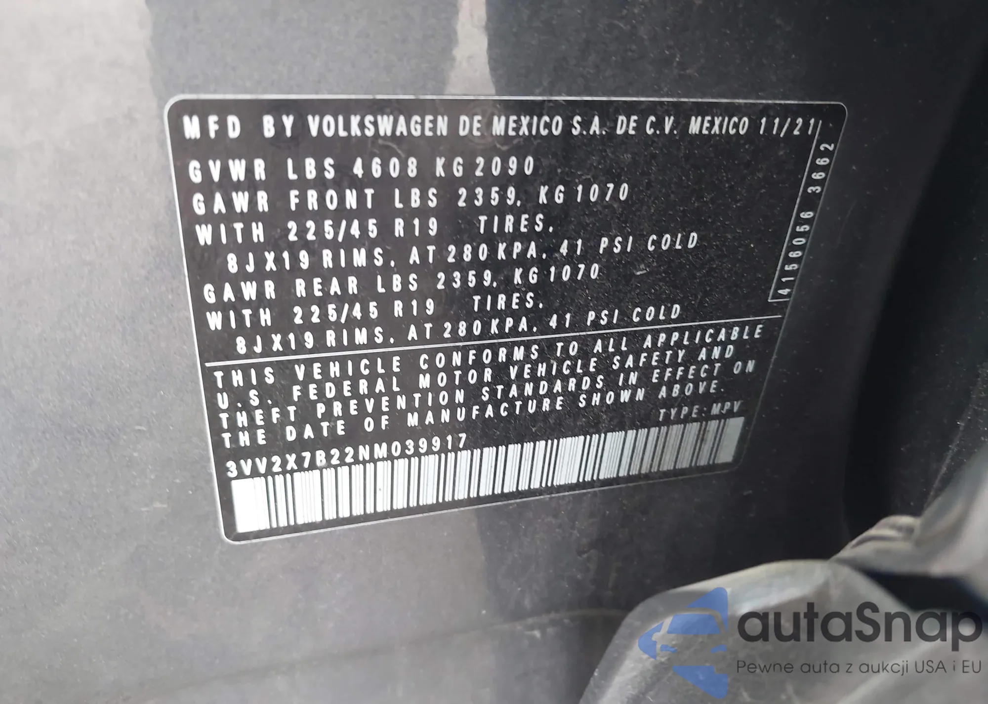 LOT: 43219939 VIN: WAUAFAFL3DN048981