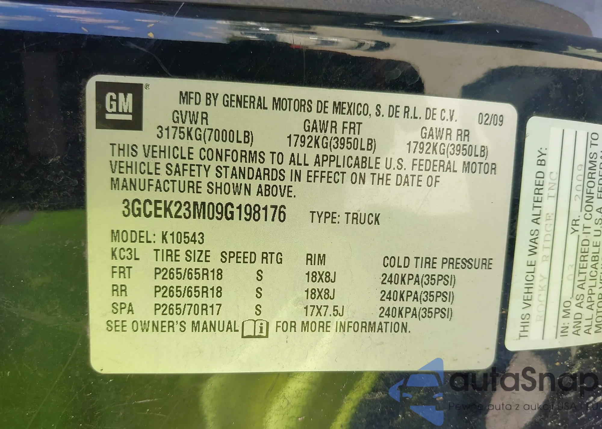 • VIN 3GCEK23M09G198176