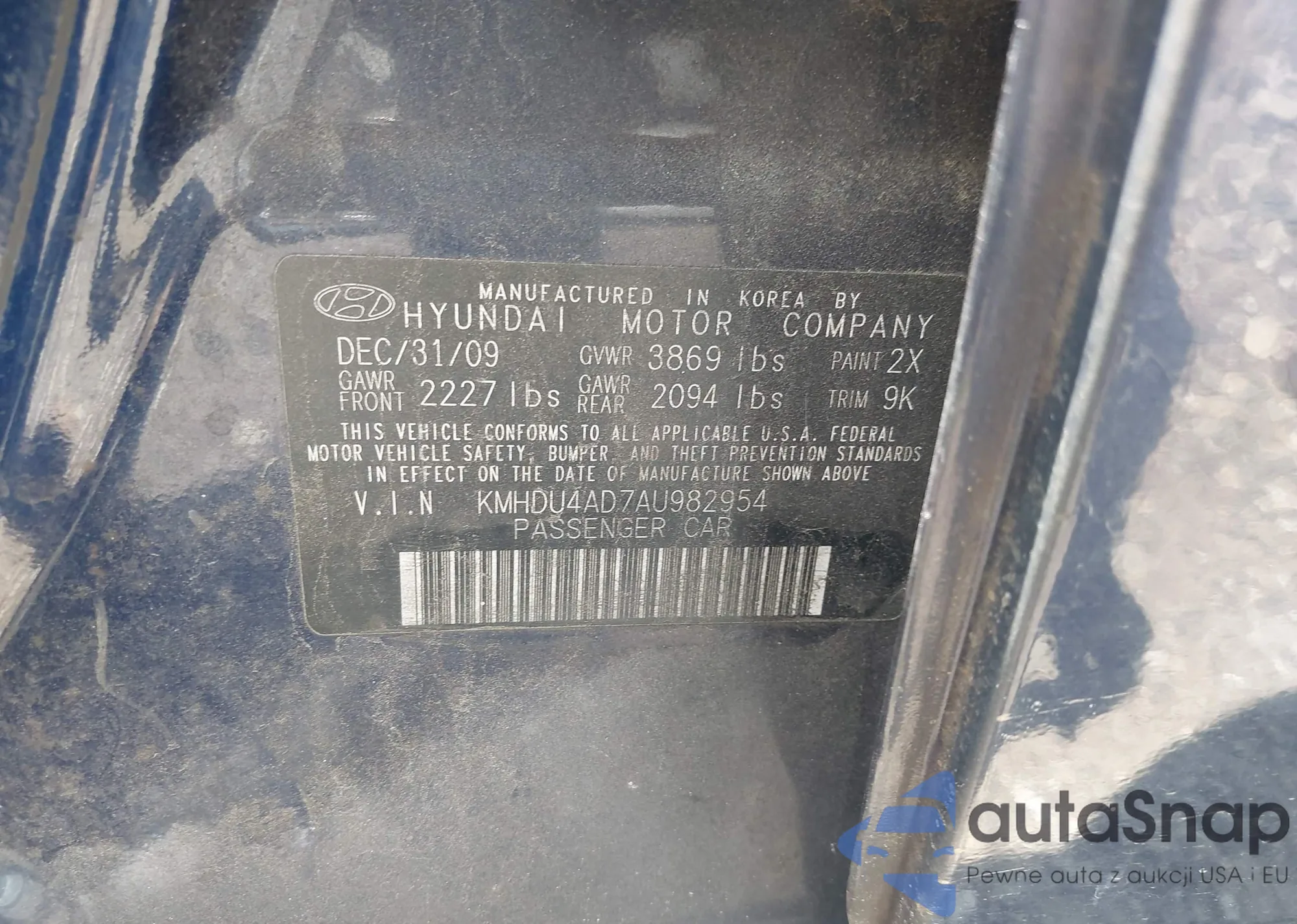 LOT: 43219038 VIN: KMHDU4AD7AU982954