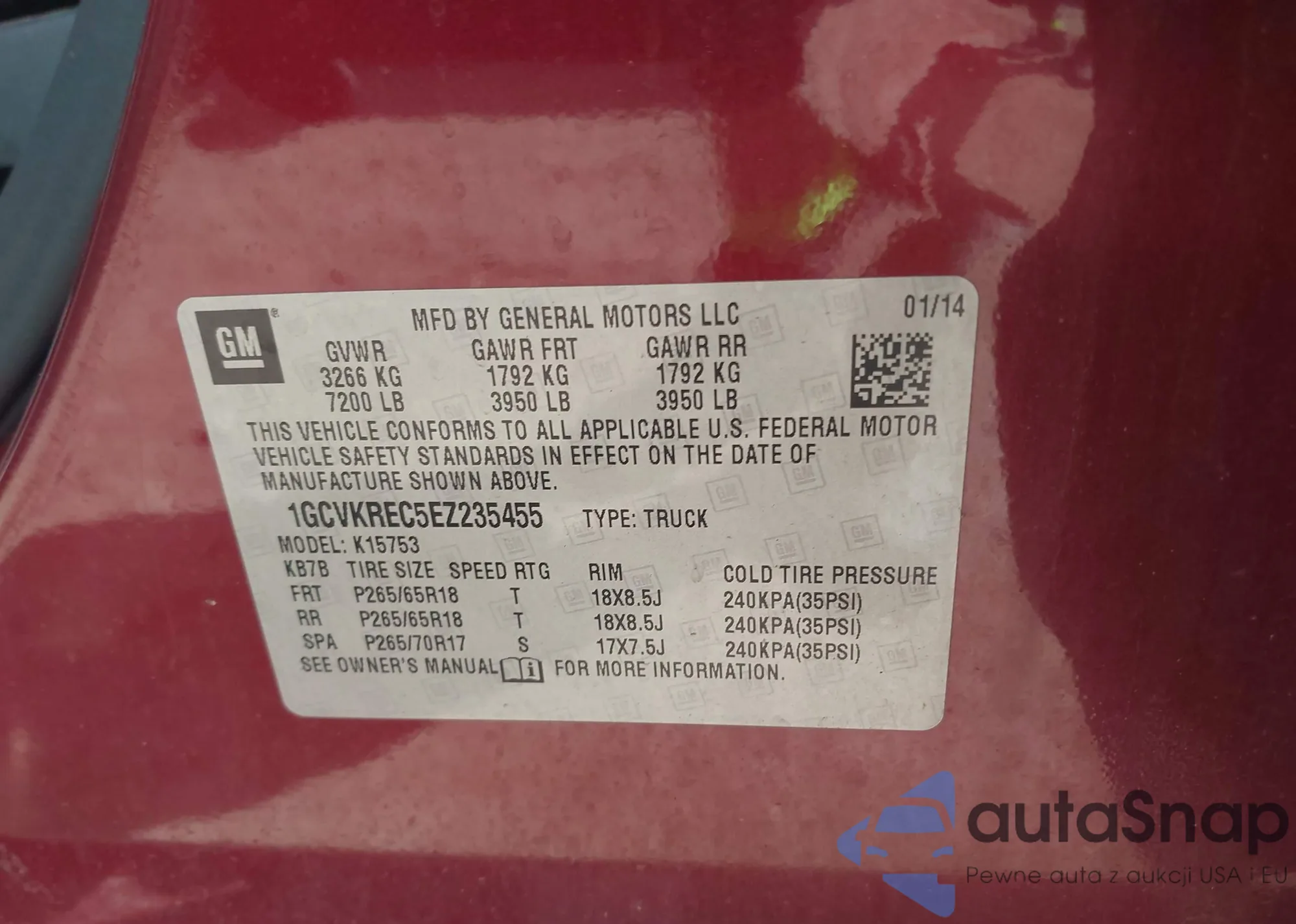 • VIN 1GCVKREC5EZ235455