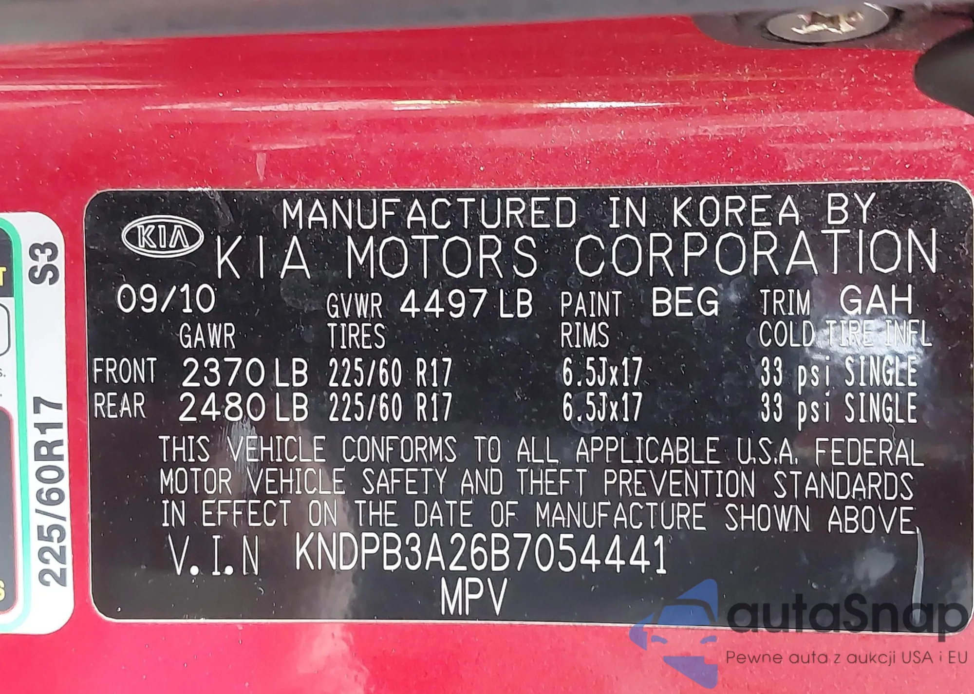 • VIN KNDPB3A26B7054441