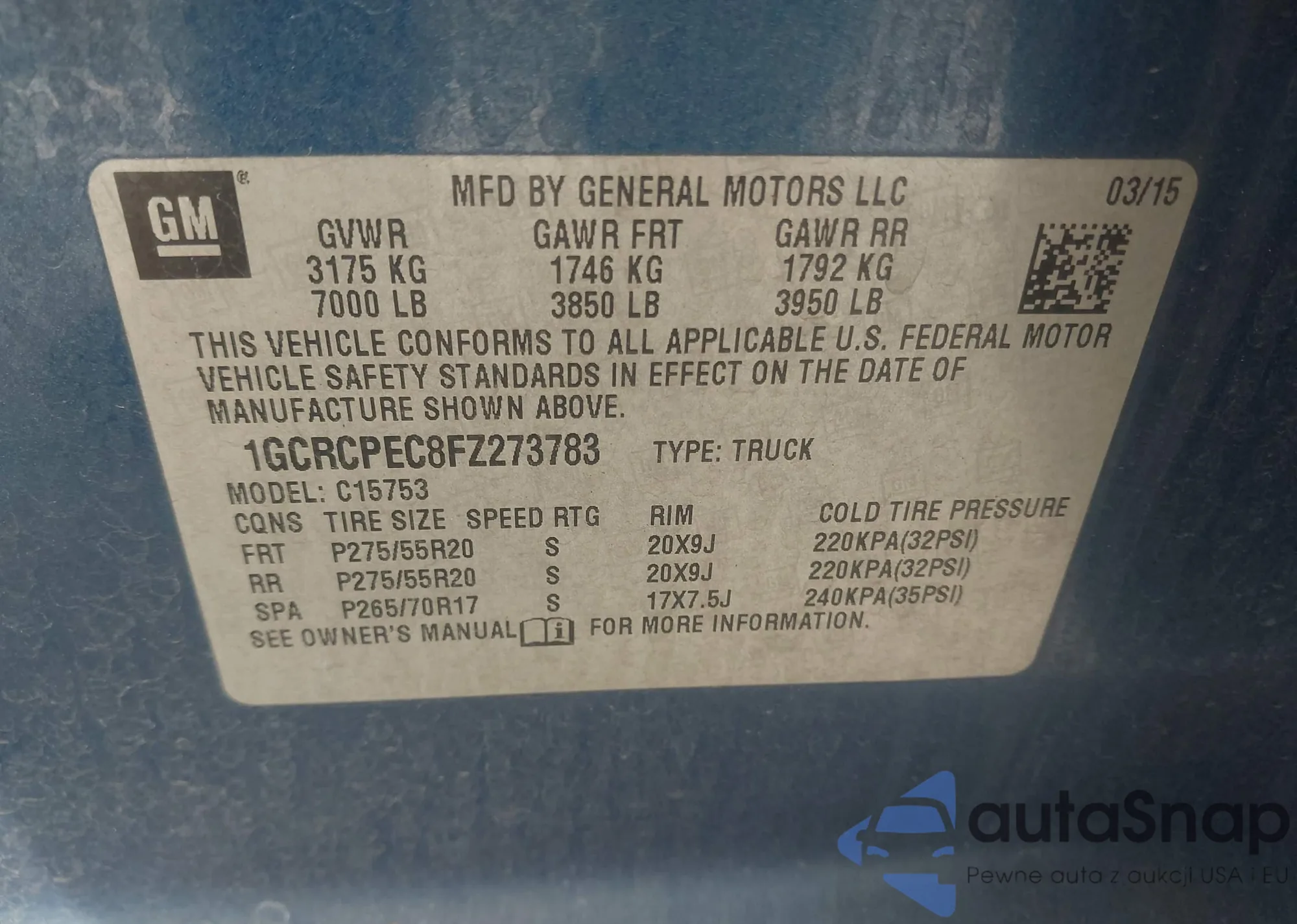 • VIN 1GCRCPEC8FZ273783
