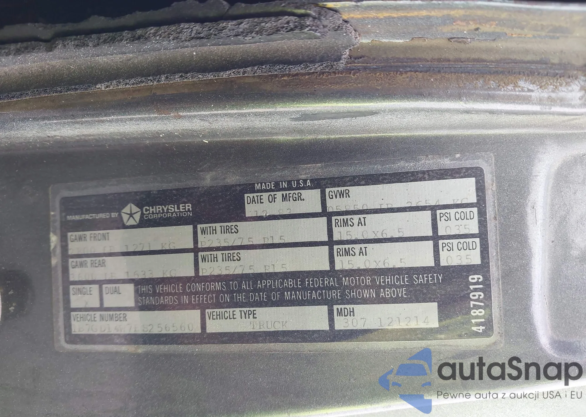 • VIN 1B7GD14W7ES256560