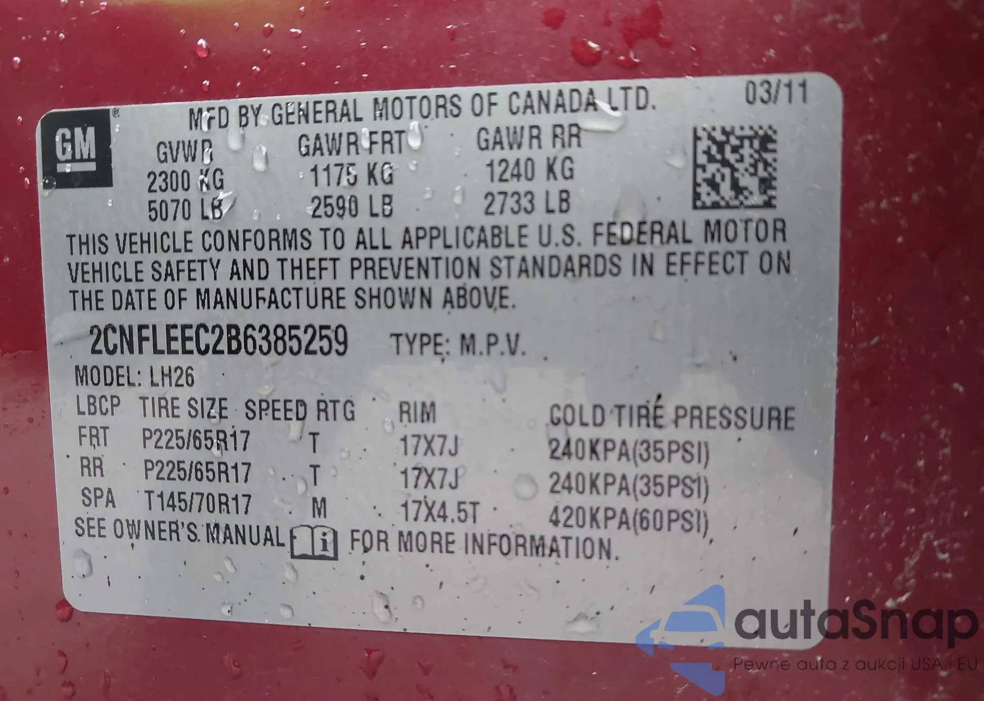 • VIN 1G11C5SL8FF203457