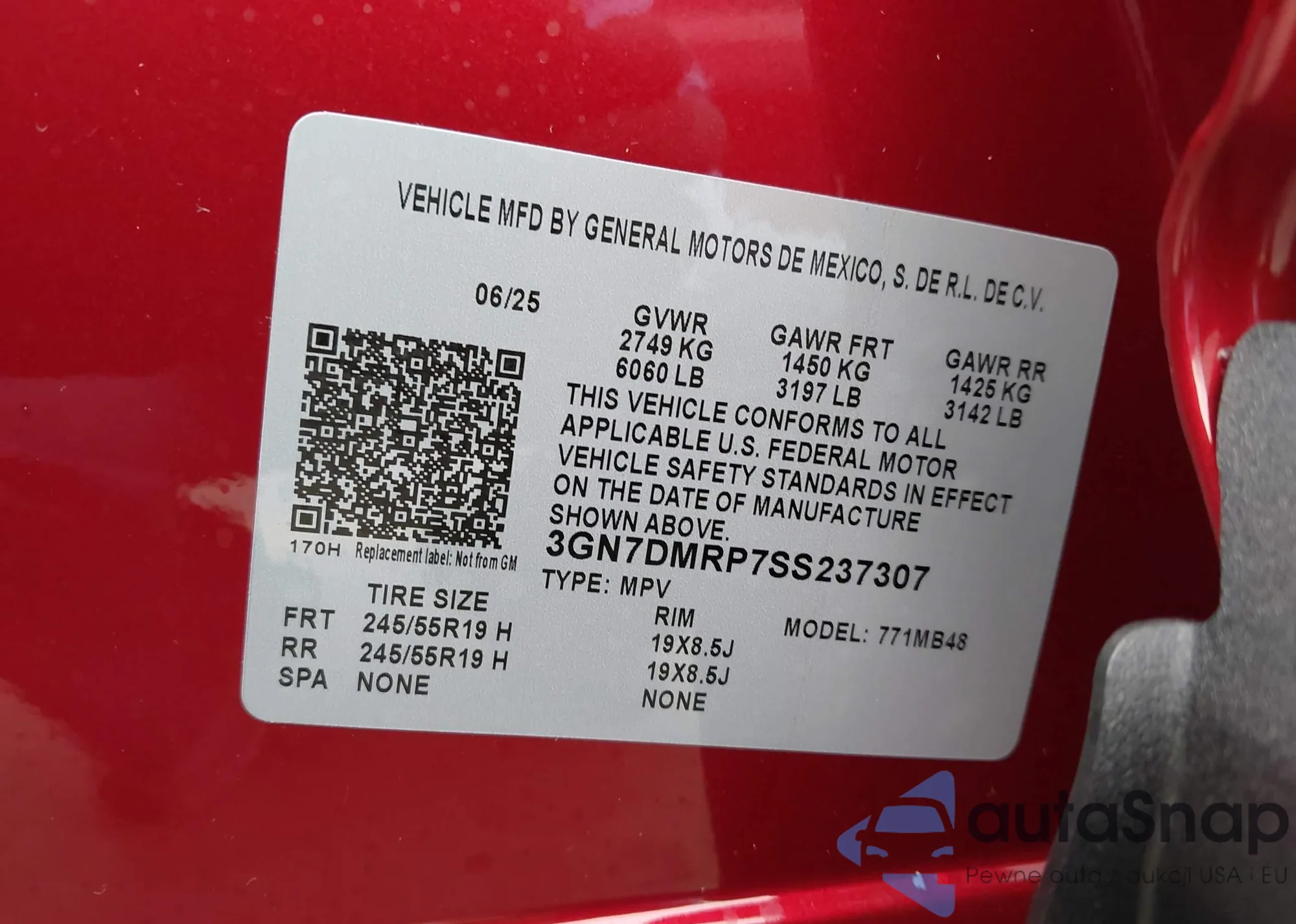 LOT: 43749391 VIN: 3GN7DMRP7SS237307