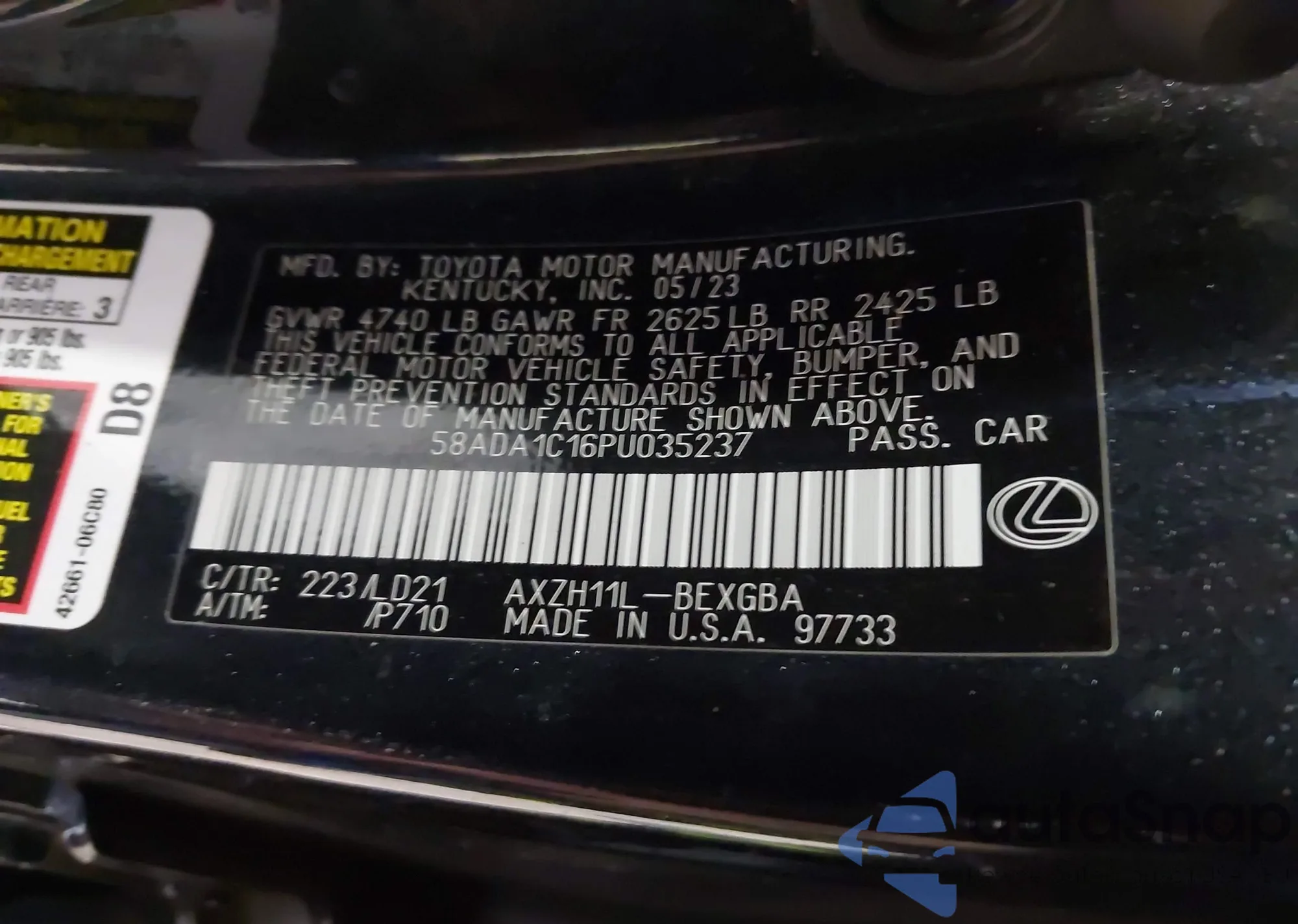 • VIN 4T1G11AK7MU447808