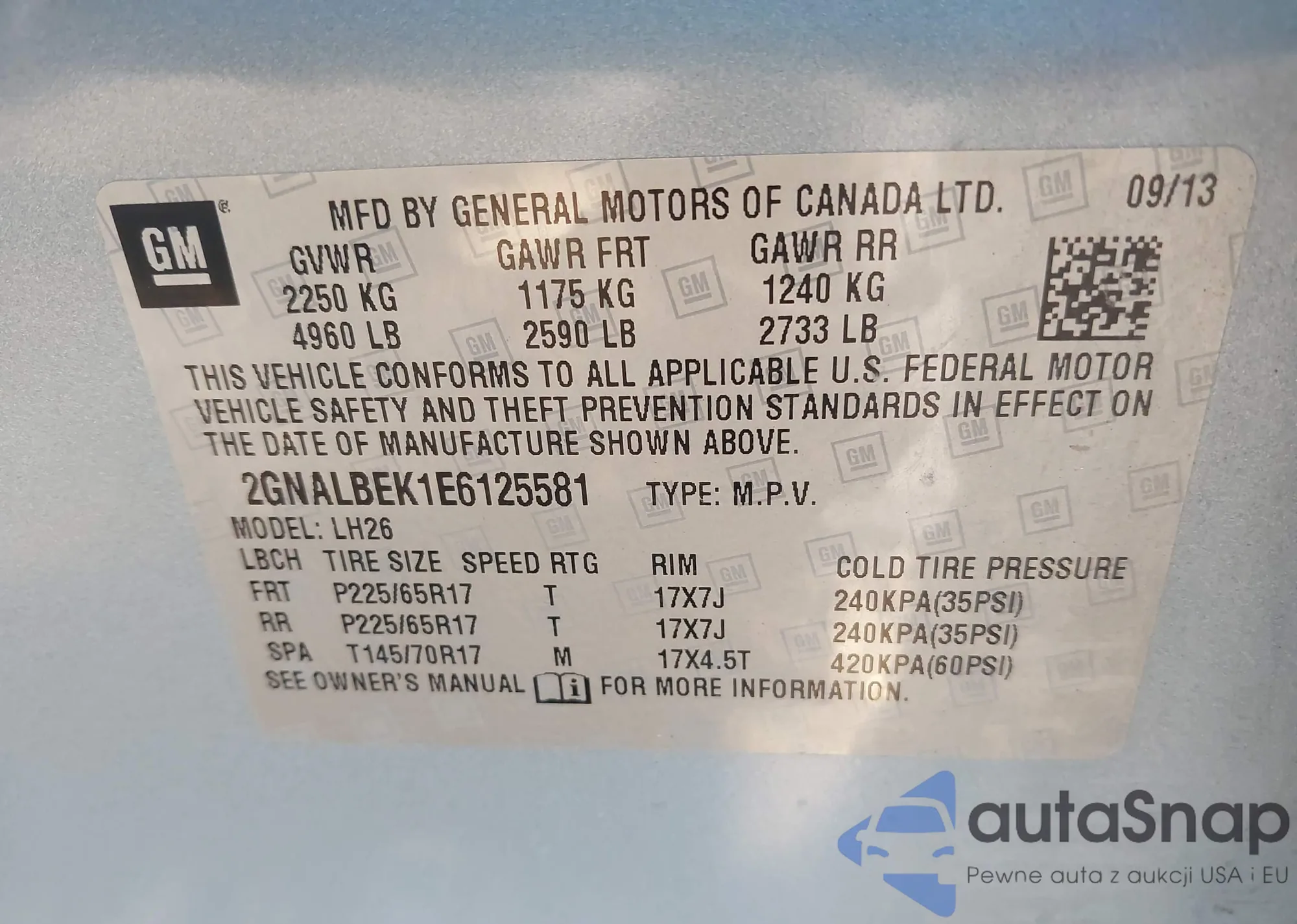 LOT: 43419929 VIN: 2GNALBEK1E6125581
