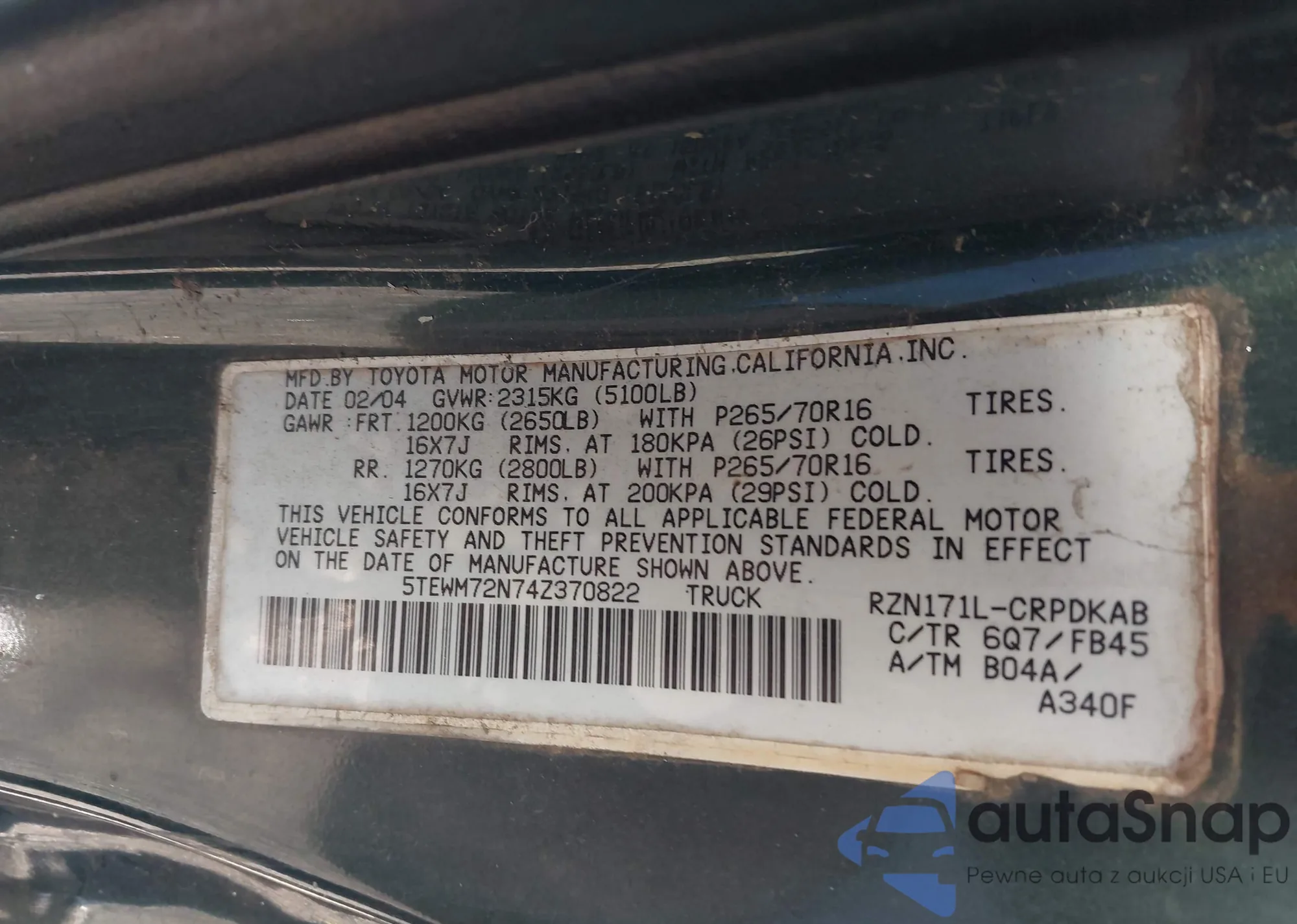 • VIN 5TEWM72N74Z370822