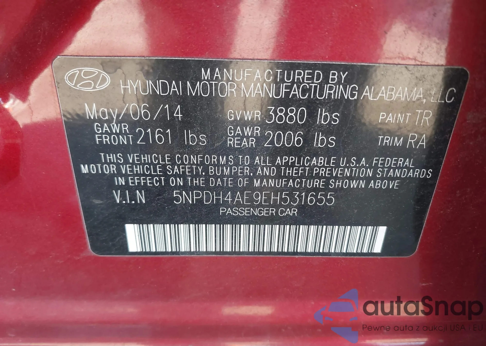 LOT: 43669150 VIN: 5NPDH4AE9EH531655