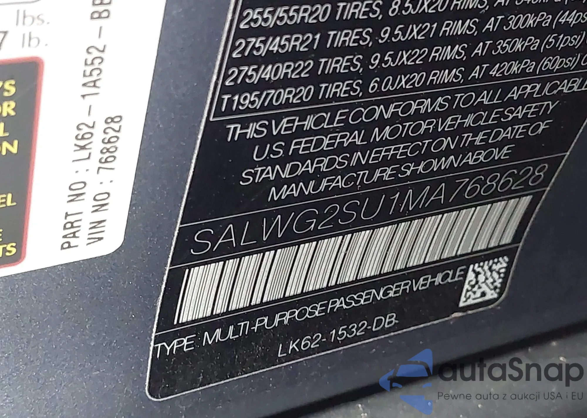 LOT: 43150858 VIN: SALWG2SU1MA768628
