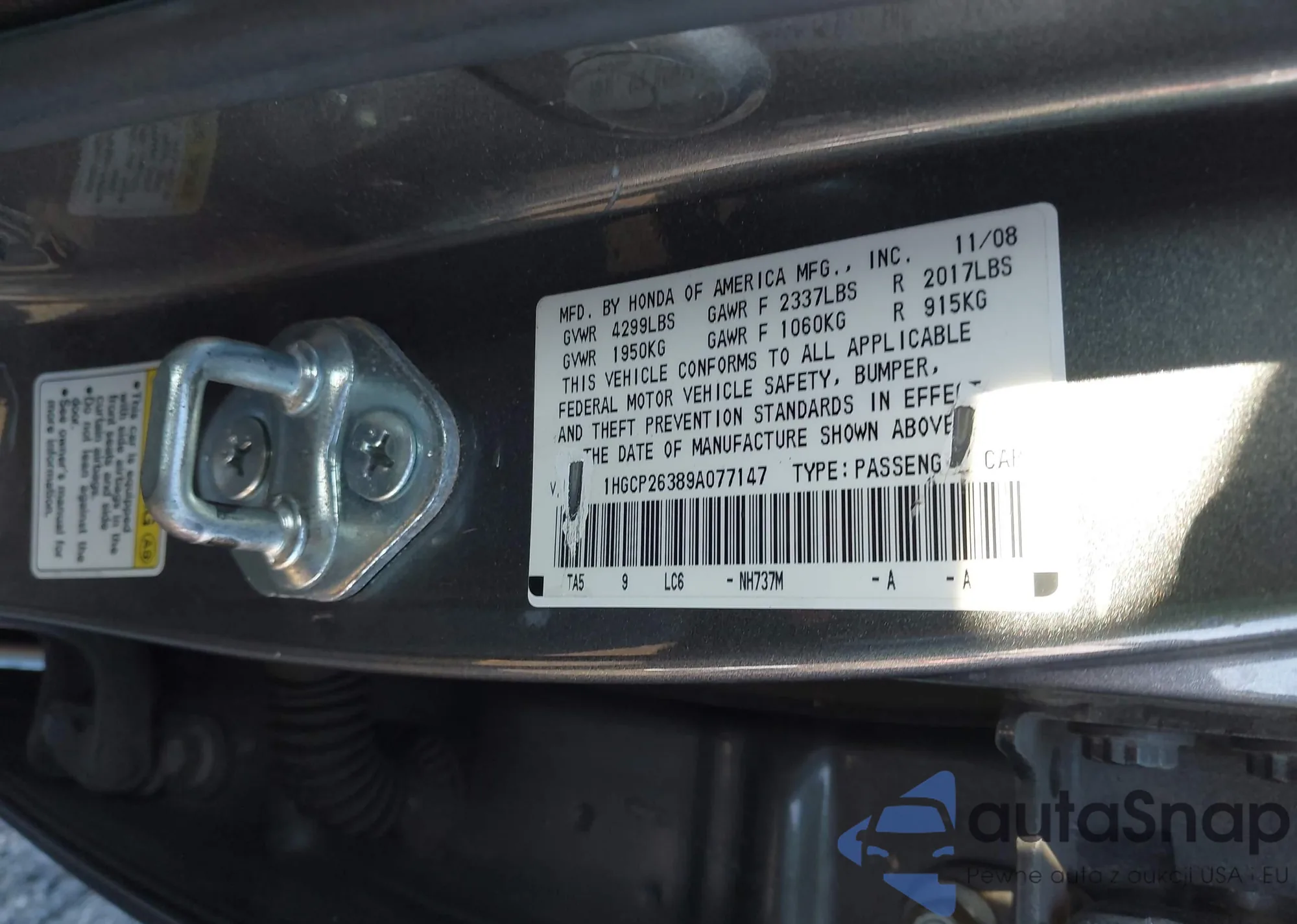• VIN 5J6RE3H7XBL020487