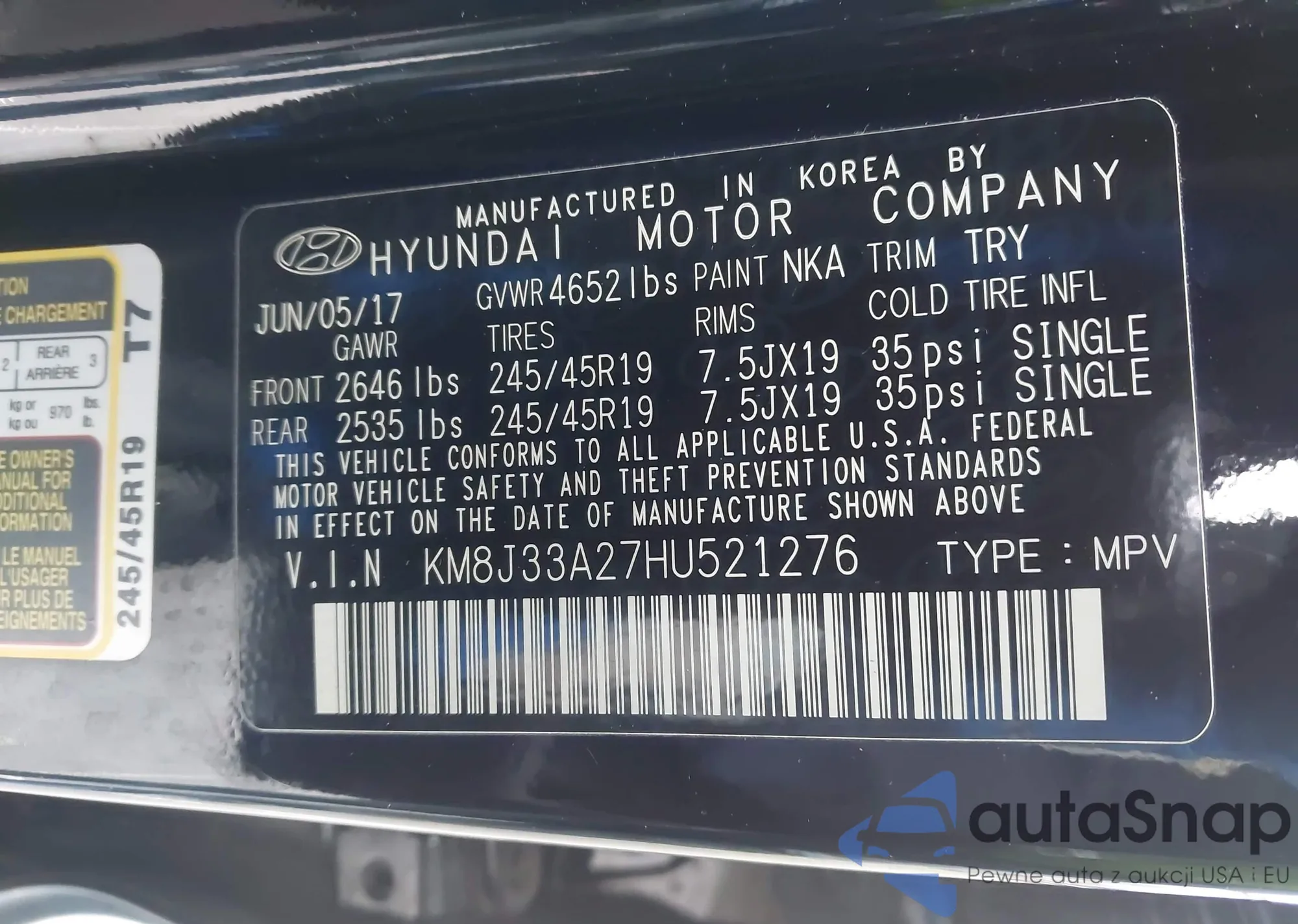 • VIN KM8J33A27HU521276