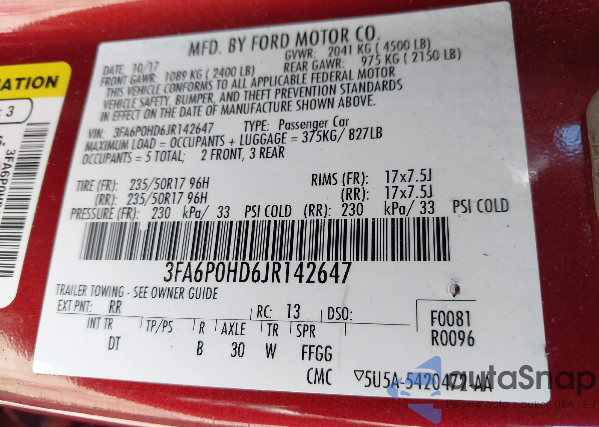 • VIN 3FA6P0HD6JR142647