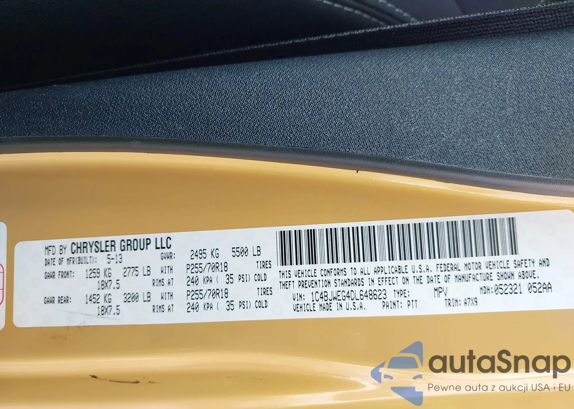 • VIN 1C4BJWEG4DL648623