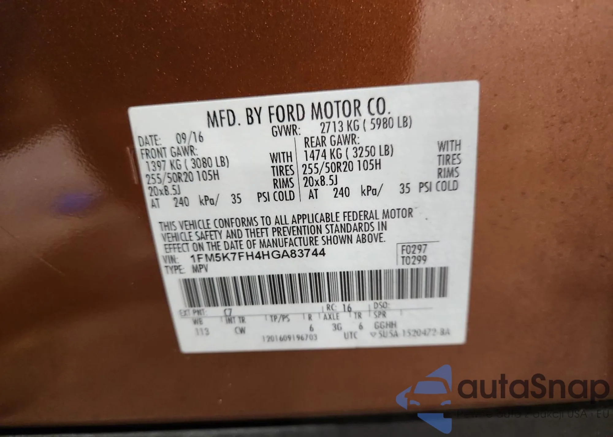 • VIN 1FM5K7FH4HGA83744