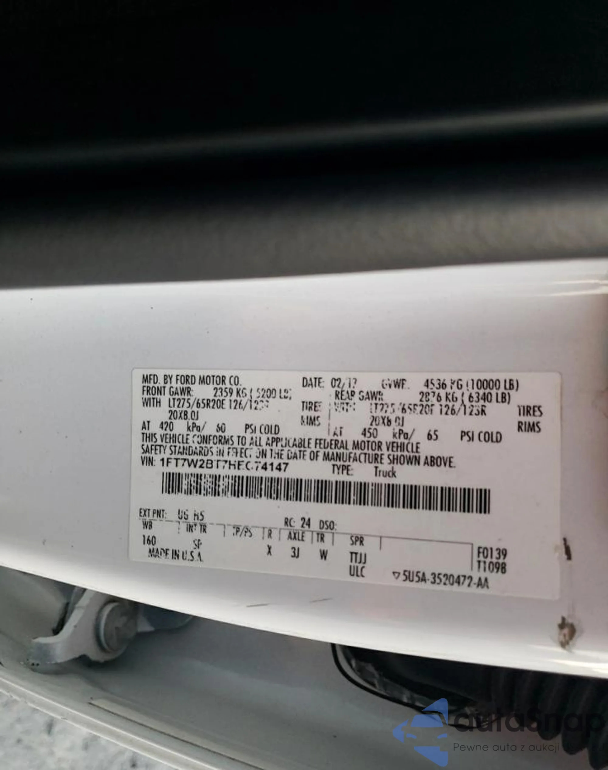 LOT: 91197775 VIN: 1FT7W2BT7HEC74147