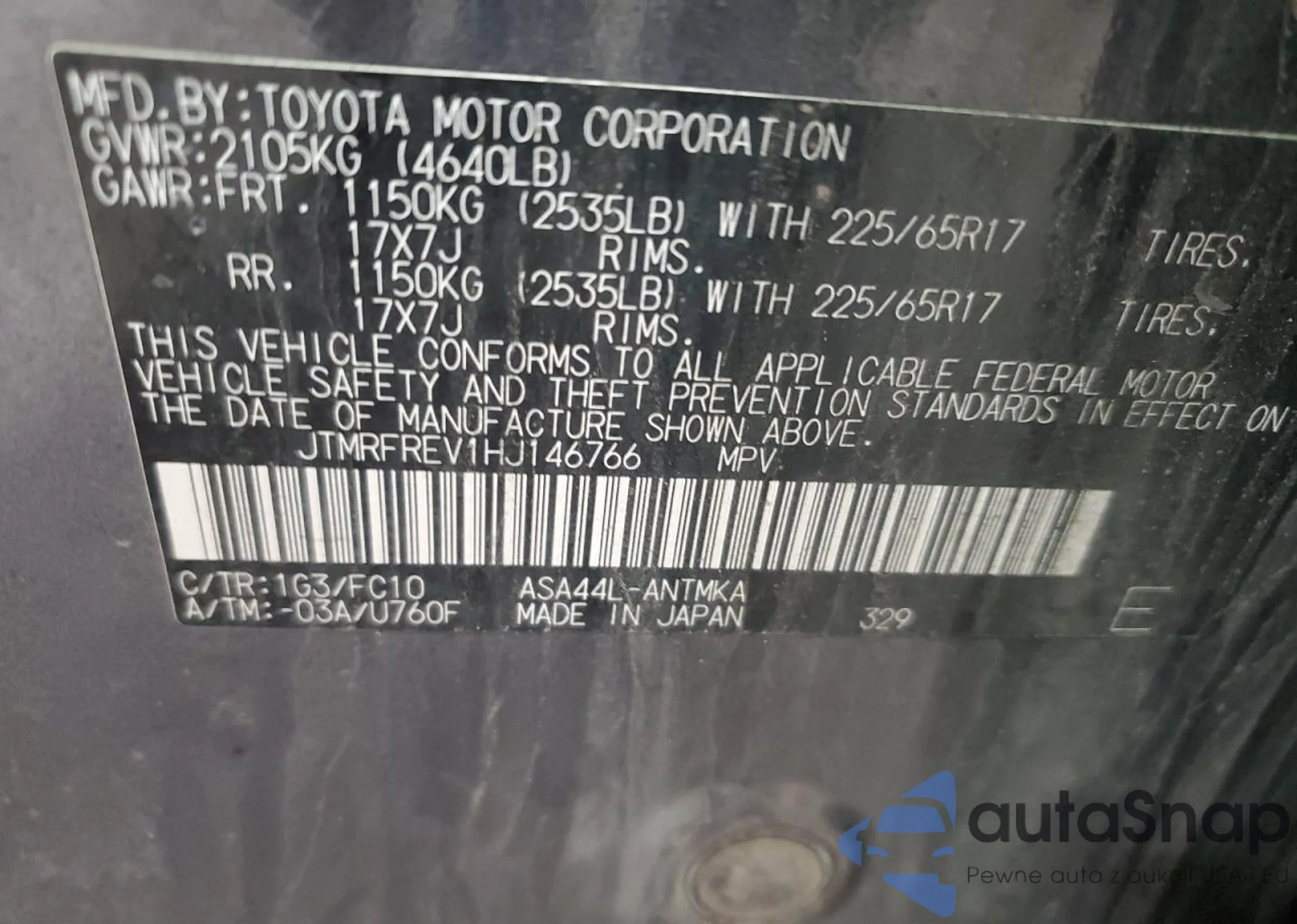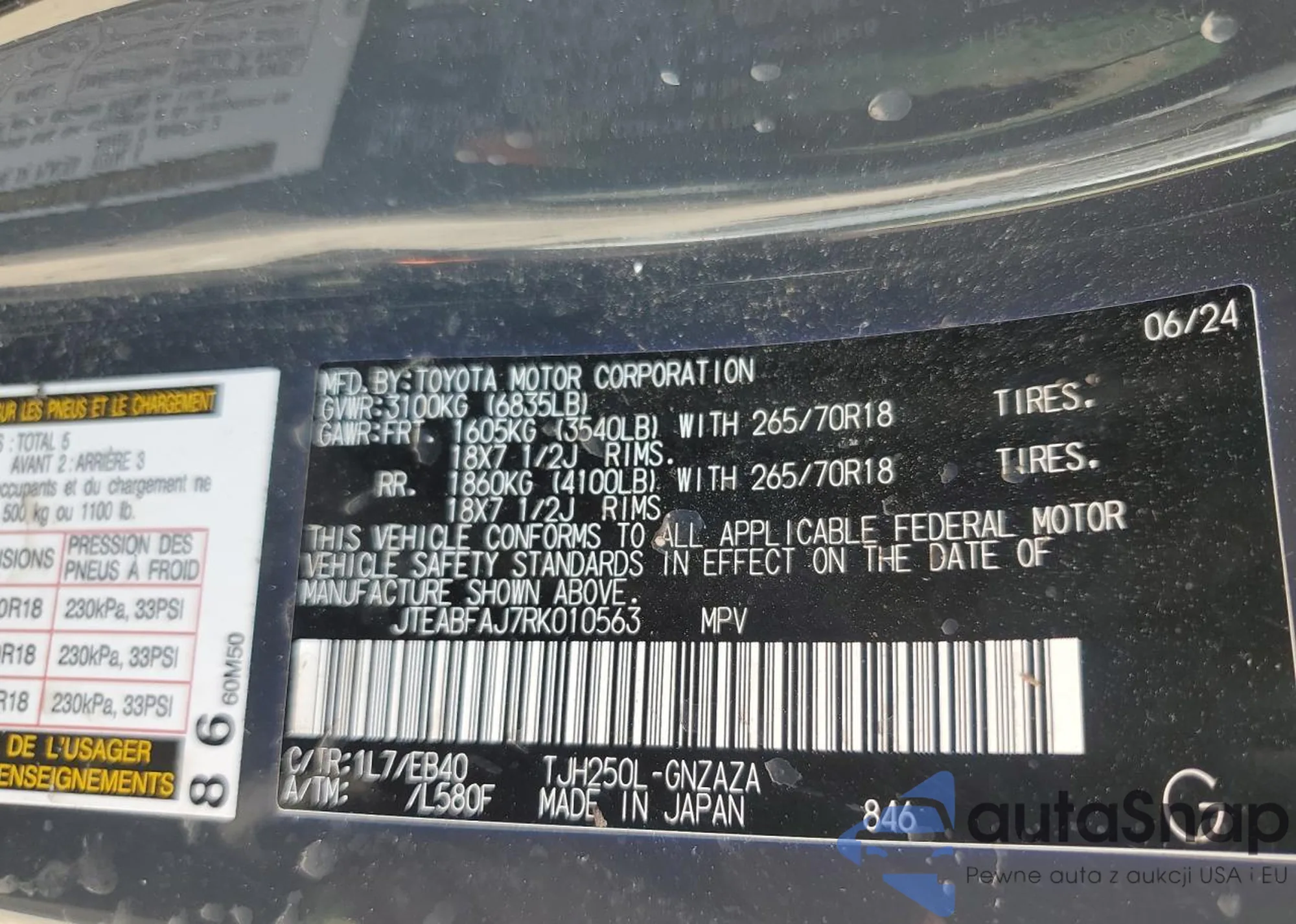 LOT: 71545225 VIN: JTEABFAJ7RK010563