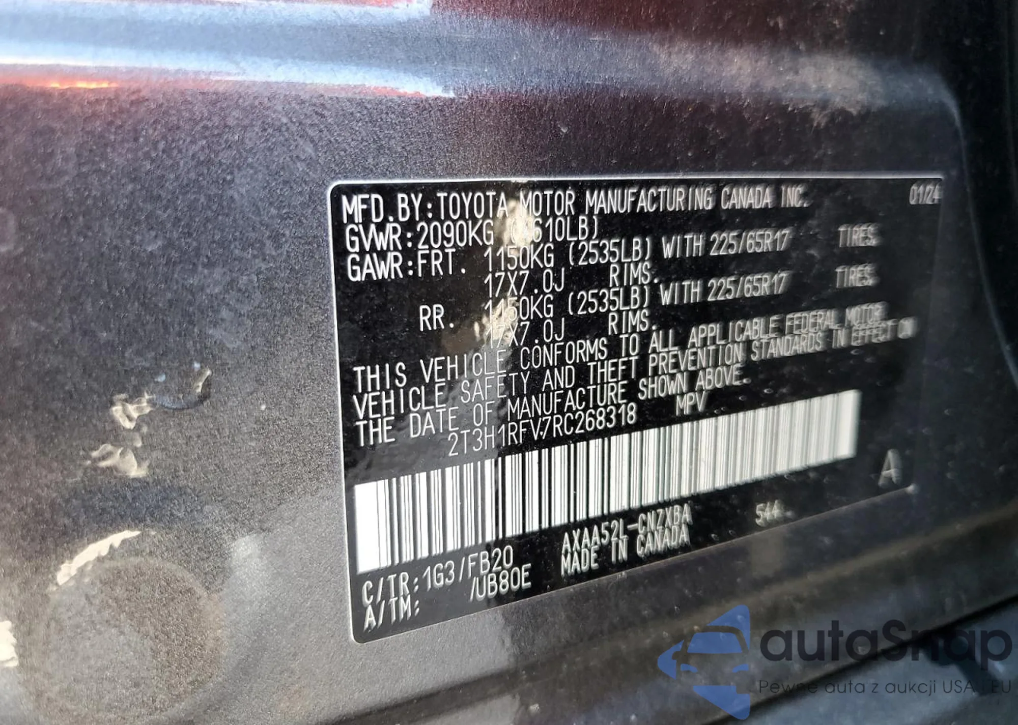 LOT: 87251985 VIN: 2T3H1RFV7RC268318