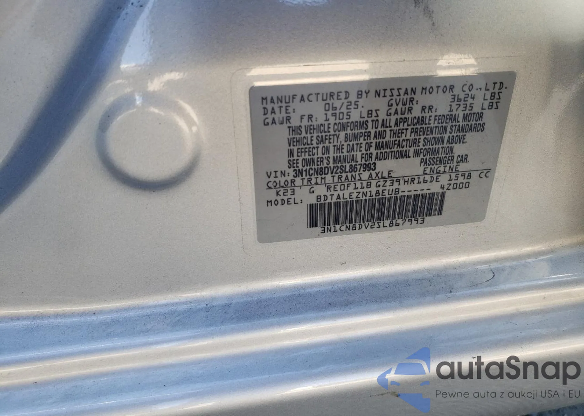 • VIN 3N1CN8DV2SL867993