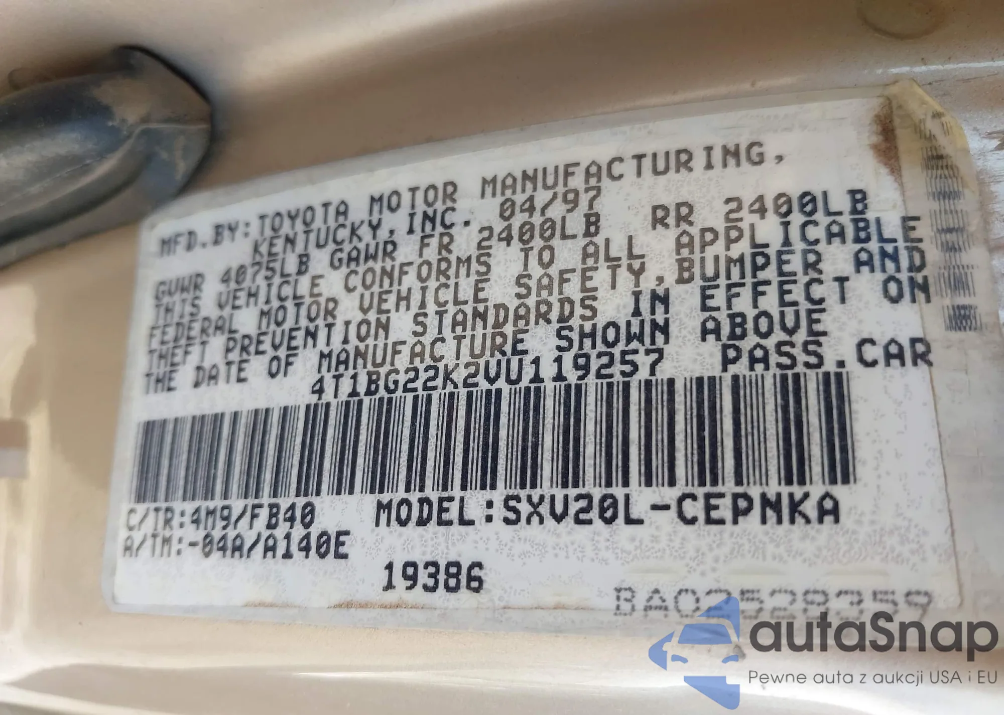 • VIN 4T1BG22K2VU119257